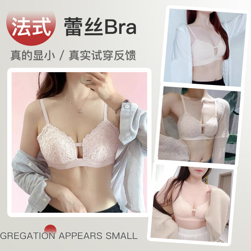 淘六只兔子蕾丝内衣女薄款显瘦胸罩收副乳防外扩白月光合集文胸套装