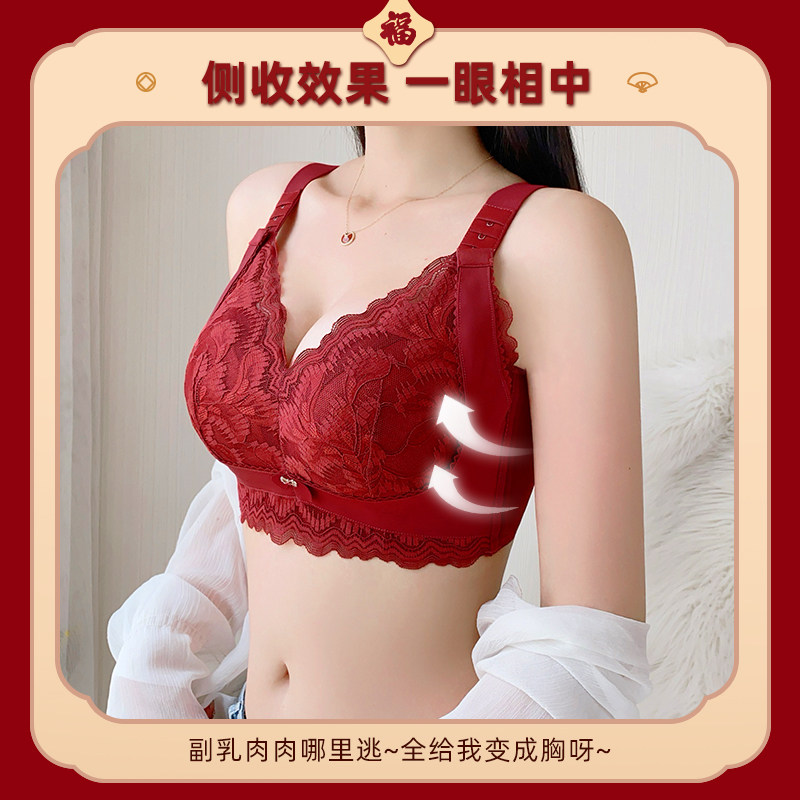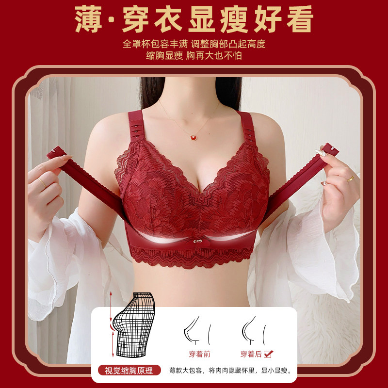 红色本命年内衣女大胸显小上托防下垂调整型无痕无钢圈文胸罩套装