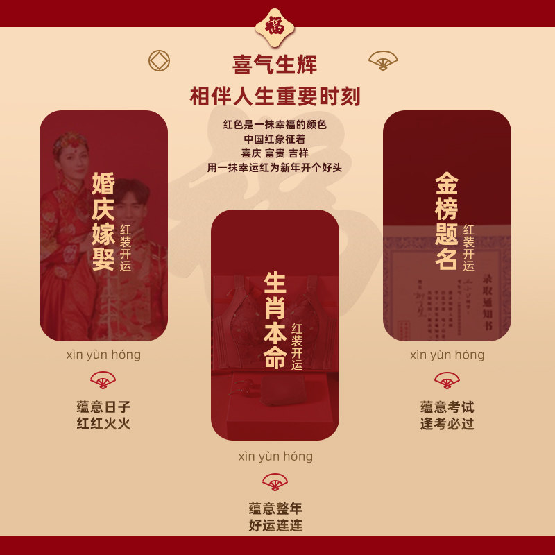 这款专为女性设计的红色本命年内衣套装,融合传统寓意与现代功能美学。采用三档调节肩带与背扣设计,灵活贴合不同胸型,尤其适合大胸女性。上托收副乳结构有效集中胸部脂肪,塑造自然聚拢效果,视觉显小更显瘦削。高侧边与加宽下扒设计提供强力支撑,有效防止胸部下垂,提升整体轮廓。精选高弹透气面料,亲肤舒适,久穿不勒。经典中国红搭配精致蕾丝边,喜庆又时尚,既是本命年必备单品,也是日常穿搭的贴心之选,兼顾健康承托与优雅美感。