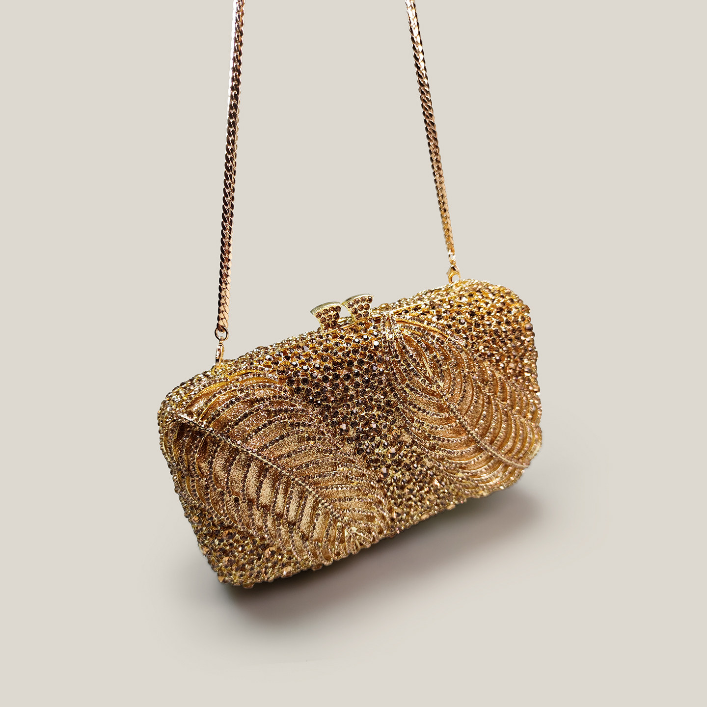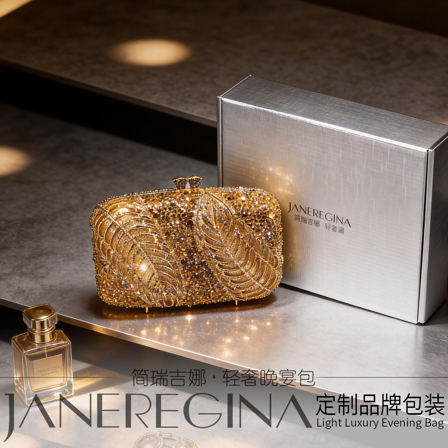 这款高定礼服晚宴包,专为轻奢婚礼与高端宴会设计,完美契合旗袍造型。包身采用精致金色调,镶嵌璀璨水钻,在灯光下熠熠生辉,尽显优雅与奢华。小巧手抓设计,线条流畅,兼具实用性与装饰性,轻松容纳 essentials。无论是搭配中式旗袍还是西式晚礼服,都能提升整体造型的华贵气质。精选优质材质,细节考究,开合顺滑,彰显不凡品味。作为婚礼宾客或晚宴名媛的必备单品,它不仅是一件配饰,更是身份与格调的象征,让每一次出场都成为焦点。