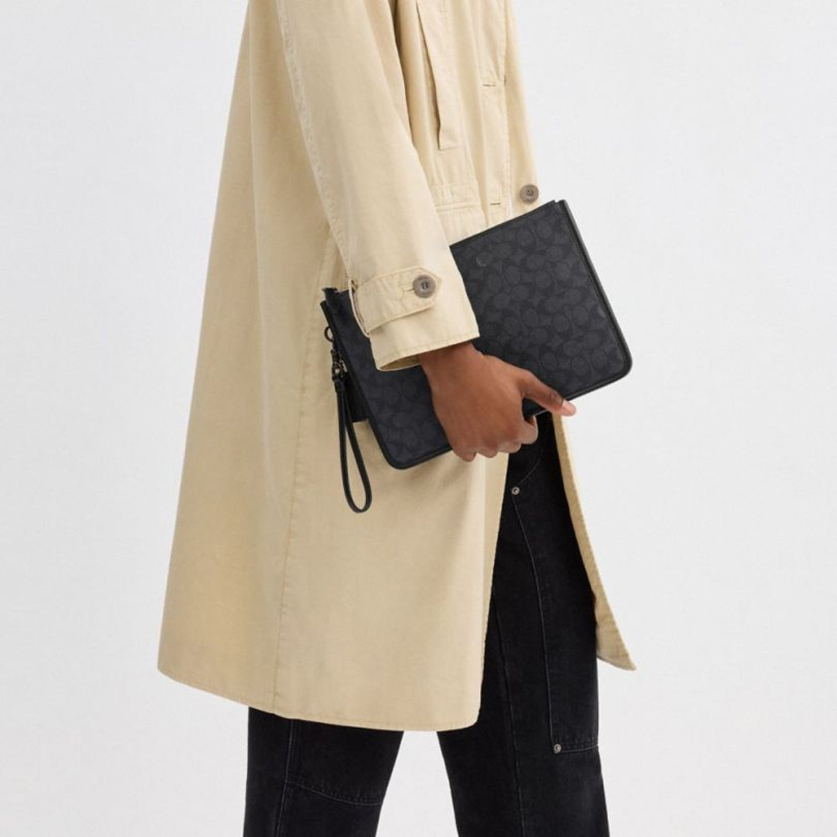 COACH/蔻驰官方专柜款Charter30男士PVC配皮手拿包(型号:CR786)融合经典设计与实用功能,是都市男士的时尚之选。包身采用高品质PVC材质搭配精致皮革饰边,兼具耐用性与高级质感。简约的矩形造型,搭配品牌标志性的C字母印花,低调彰显品牌辨识度。内部空间合理,设有多个卡位与主隔层,轻松收纳手机、钱包、证件等日常物品。磁扣开合设计便捷安全,金属LOGO点缀提升整体质感。无论是商务出行还是休闲场合,这款手拿包都能完美搭配,展现男士的干练与品味,是COACH经典与现代风格结合的典范之作。