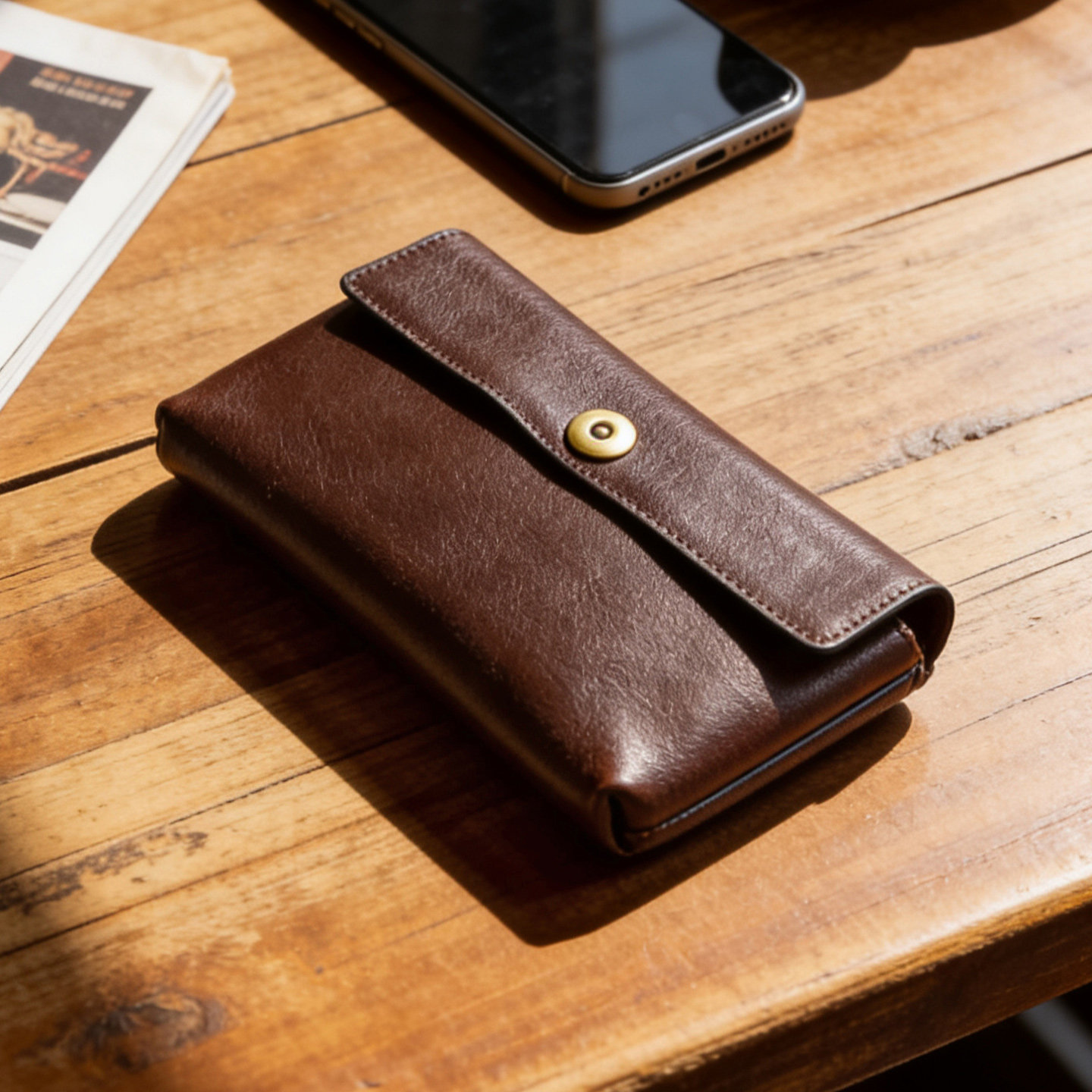这款头层植鞣牛皮大屏手机包,采用优质真皮打造,质感醇厚,复古韵味十足。包身设计简约大气,男女皆宜,可容纳两部大屏手机,内部结构科学分区,兼顾收纳卡位、零钱袋及证件位,满足日常出行需求。植鞣工艺使皮质随使用时间愈发温润,留下独特使用痕迹。磁扣开合设计便捷安全,搭配可调节腕带,可手拿或斜挎,实用又时尚。无论是通勤、旅行还是日常搭配,这款多功能真皮手拿包都能轻松驾驭,彰显品味与格调,是追求质感生活的理想之选。