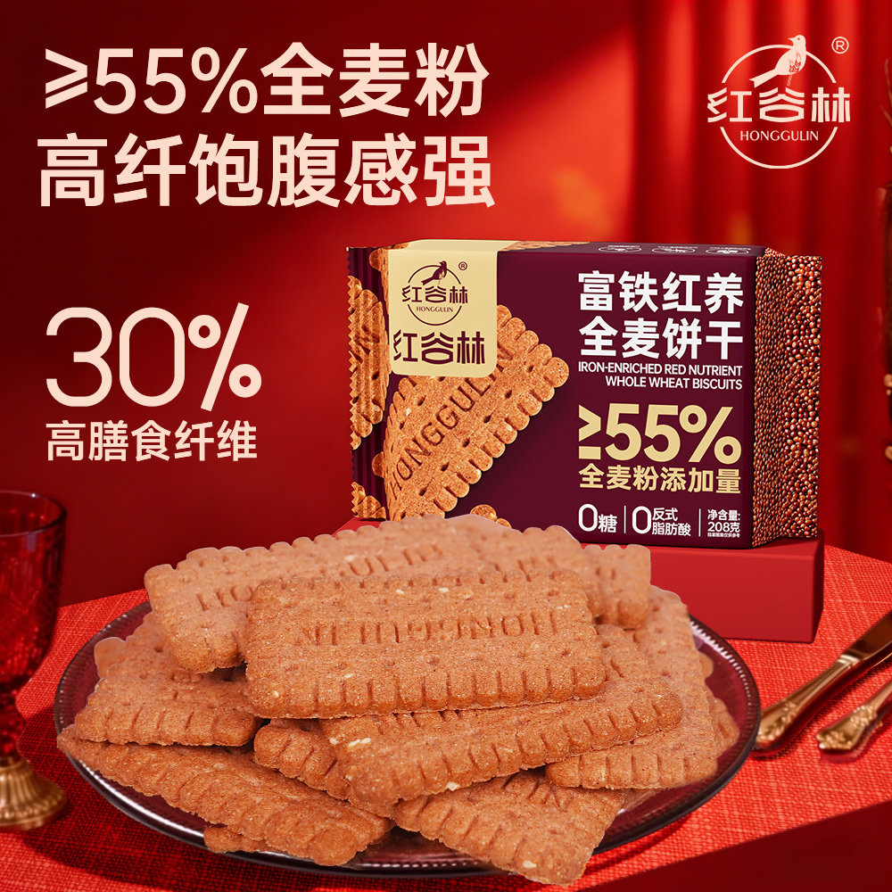 天猫红谷林富铁红养9黑9红全麦饼干组合休闲零食下午茶追剧必备零食