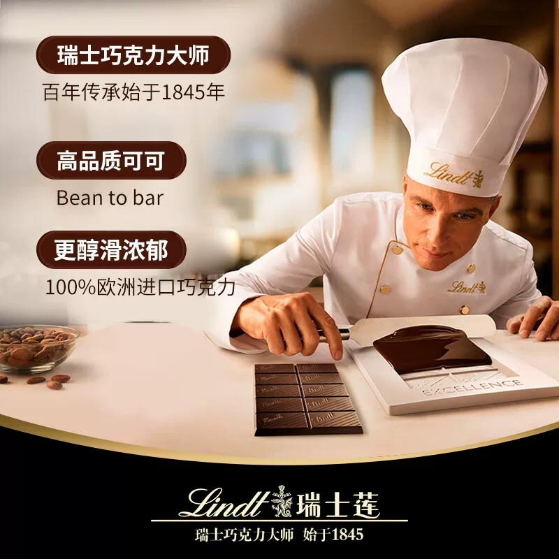 天猫【正品行货】Lindt瑞士莲特醇排装系列纯可可脂黑巧克力健身