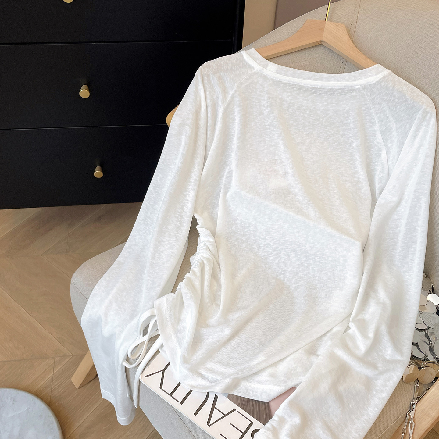 淘10AMsotiiiiired 莱赛尔大U领荡领设计感长袖罩衫防晒衫