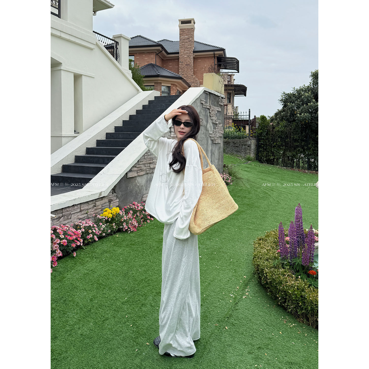 pusumede 薄款微透长袖T恤女套头针织防晒罩衫宽松慵懒风外穿上衣
