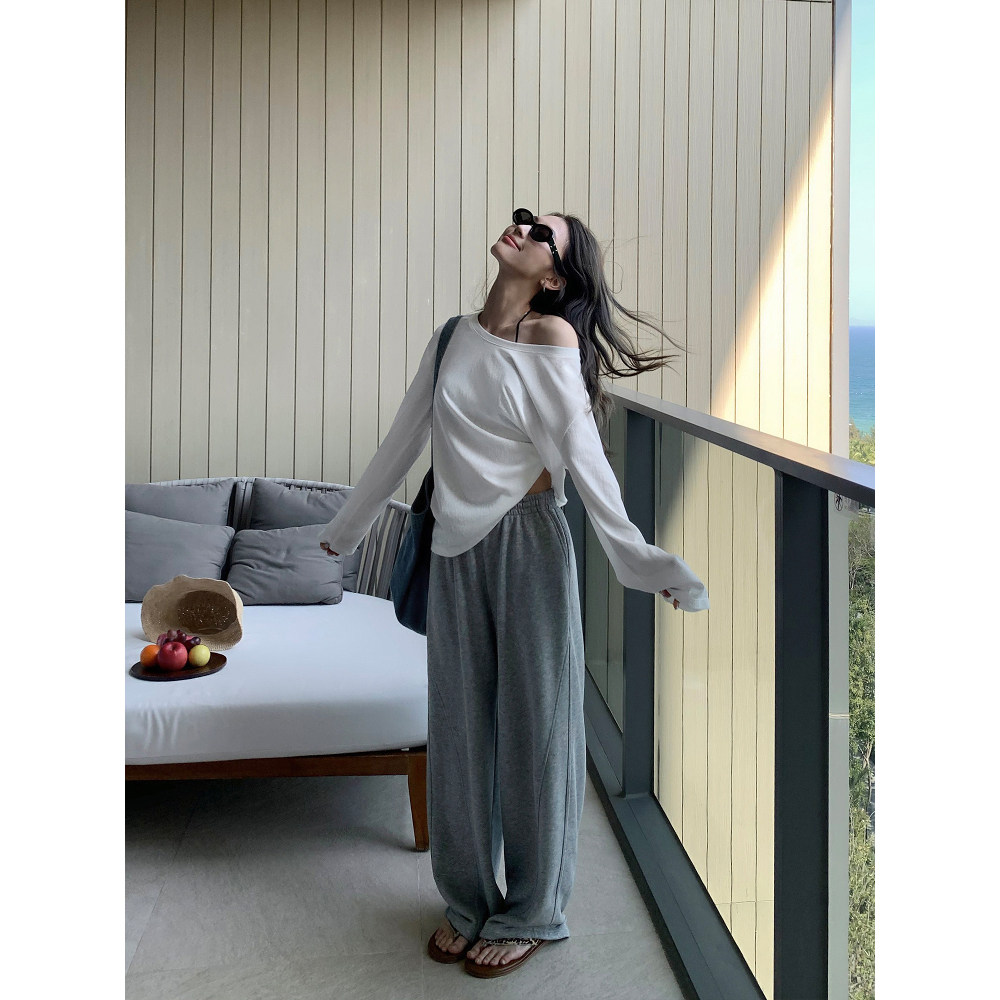 淘宝pusumede 轻盈雪花棉 大圆领长袖t恤女宽松休闲针织防晒衫上衣
