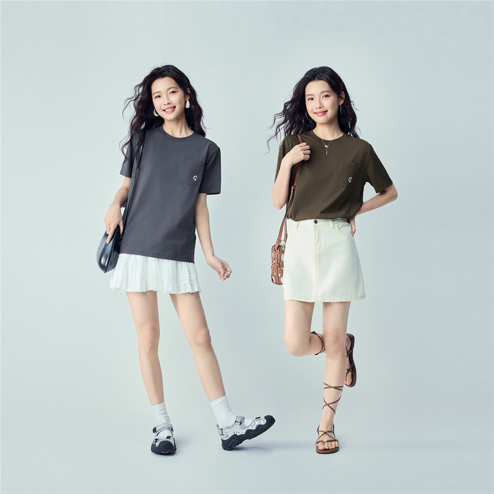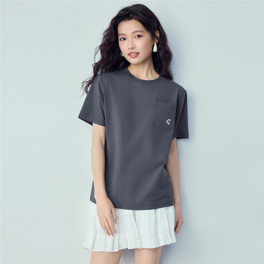 佐丹奴短袖T恤女装黑科技凉感抗菌防晒刺绣口袋圆领上衣13326280