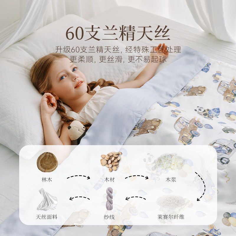 天猫英氏60S兰精天丝7A抗菌夏被儿童夏凉被空调被宝宝幼儿园凉感被子