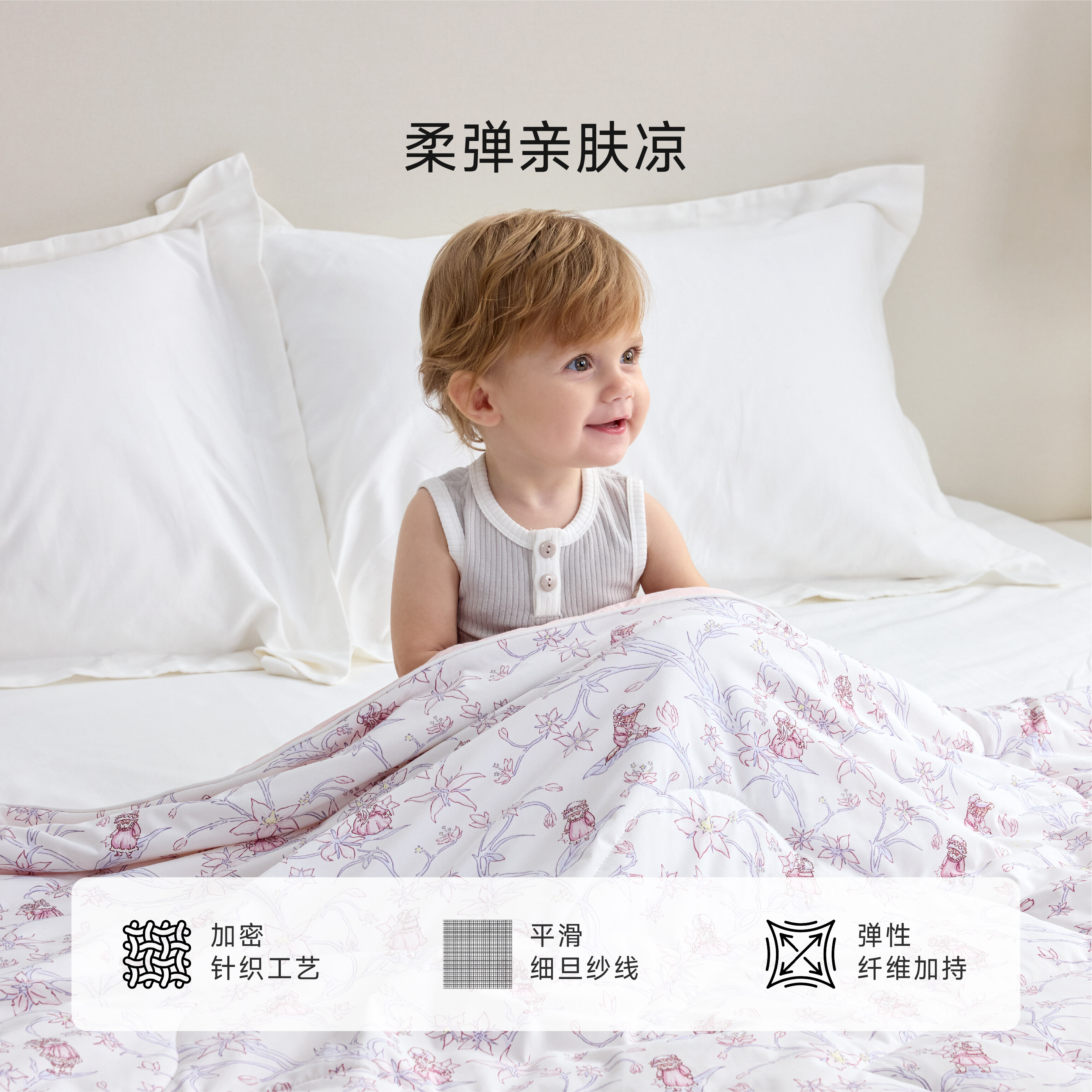 Domiamia夏凉被专为婴幼儿设计,采用A类婴幼儿安全标准面料,亲肤柔软,无荧光剂、无甲醛,呵护宝宝娇嫩肌肤。填充物轻盈透气,具备优异凉感性能,能快速导走体热,有效防止夏季闷热出汗,让宝宝安睡整晚。被面精致印花,色彩柔和,符合婴幼儿视觉发育需求。可水洗设计,方便清洁,耐用不变形。适用于空调房或炎热夏季,是新生儿、婴儿及儿童夏季睡眠的理想选择,兼顾舒适、安全与清凉体验,让宝贝在舒适环境中健康成长。