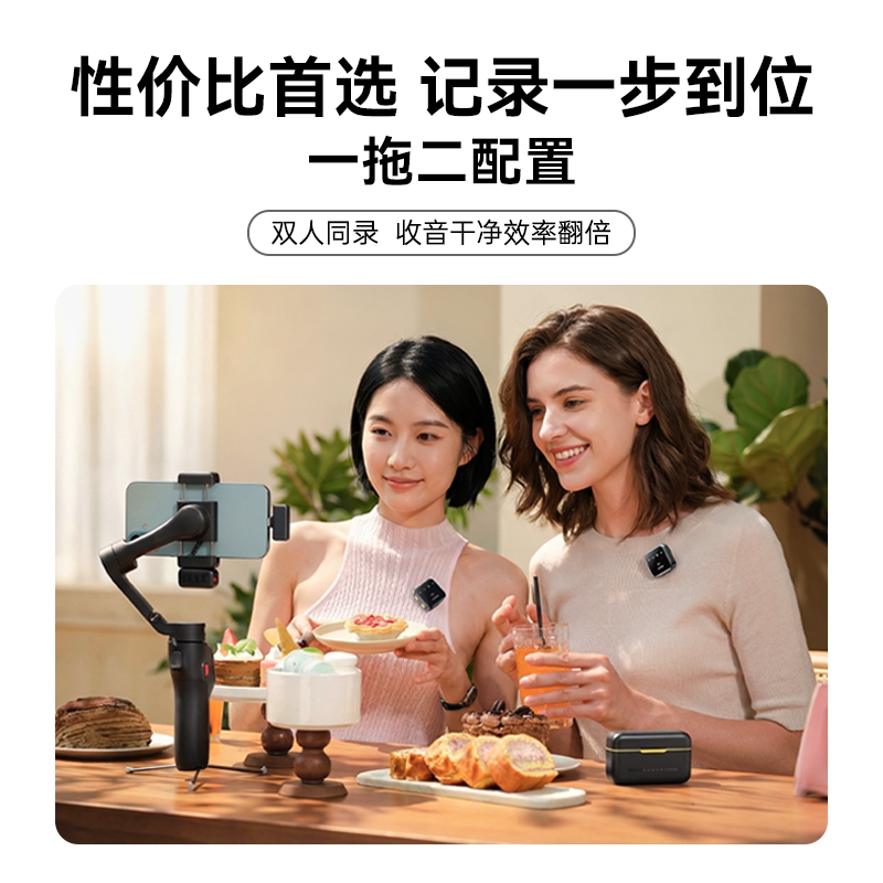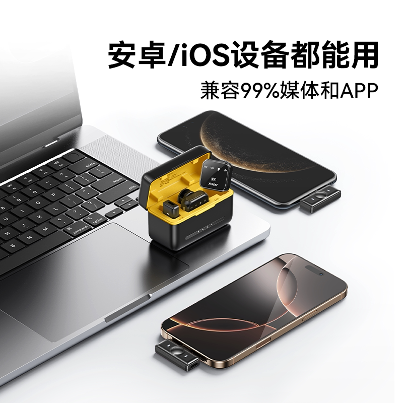 西圣Mike2是一款专为直播、拍视频和录音设计的夹领式无线麦克风,支持一拖二功能,可同时连接两个麦克风,满足双人出镜或采访场景需求。采用2.4GHz无线传输技术,信号稳定、抗干扰强,有效距离可达50米,确保声音清晰无延迟。内置高灵敏度全向麦克风,拾音精准,有效降低环境噪音,人声还原度高。轻巧便携,佩戴舒适,兼容手机、相机、电脑等多种设备,即插即用。配备Type-C/Lightning接口接收器,续航长达6小时,是短视频创作、直播带货、网课教学等专业场景的理想收音选择。