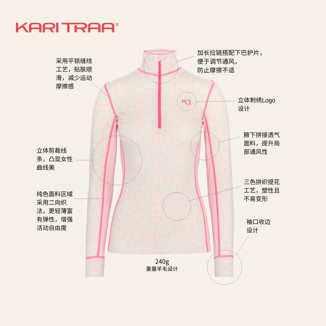淘宝挪威Kari Traa Rose北欧玫瑰系列美丽奴羊毛打底保暖内衣