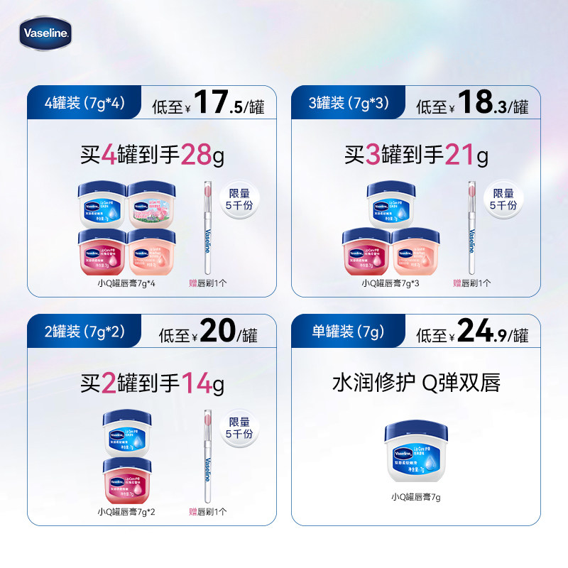 凡士林倍润护唇膏套盒保湿滋润秋冬去死皮防干裂修复淡化唇纹男女