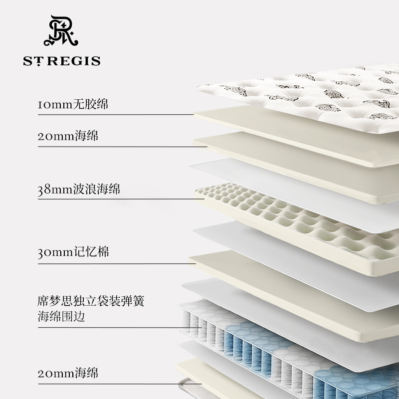 天猫瑞吉床垫五星级酒店独立袋装弹簧席梦思定制床架万豪同款双人2米