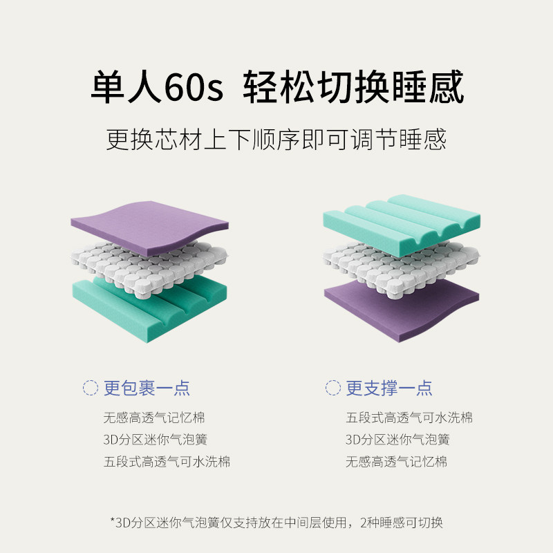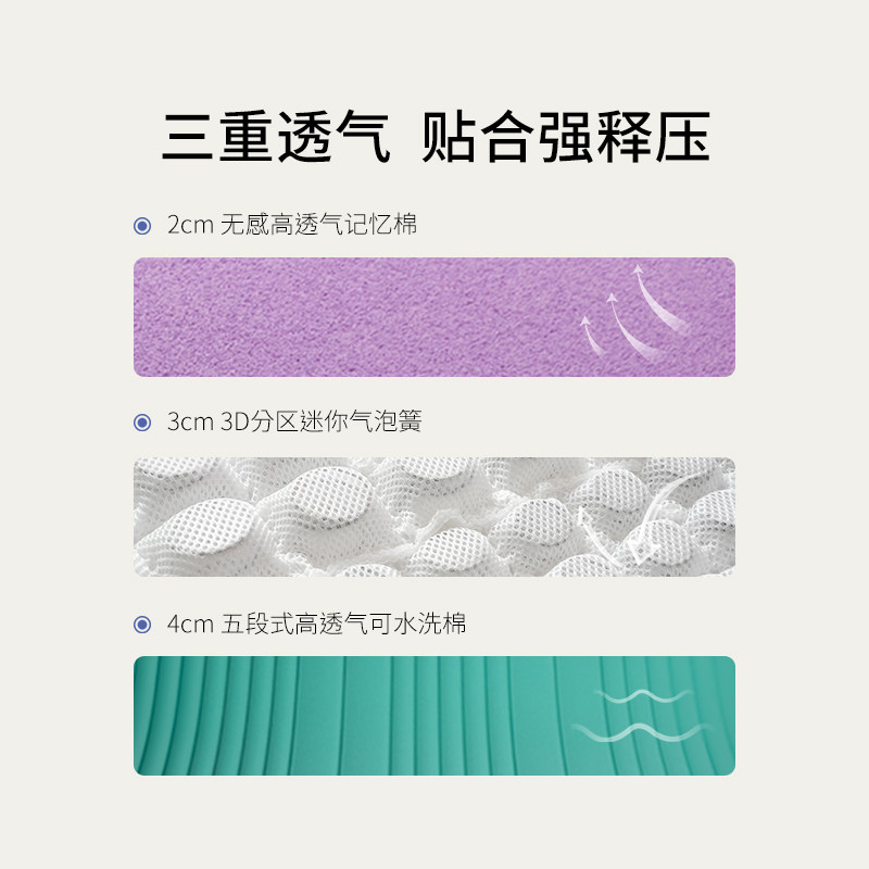 天猫【M】栖作顽石透气air床垫3D分区迷你气泡簧双人弹簧床垫1.8m卧室