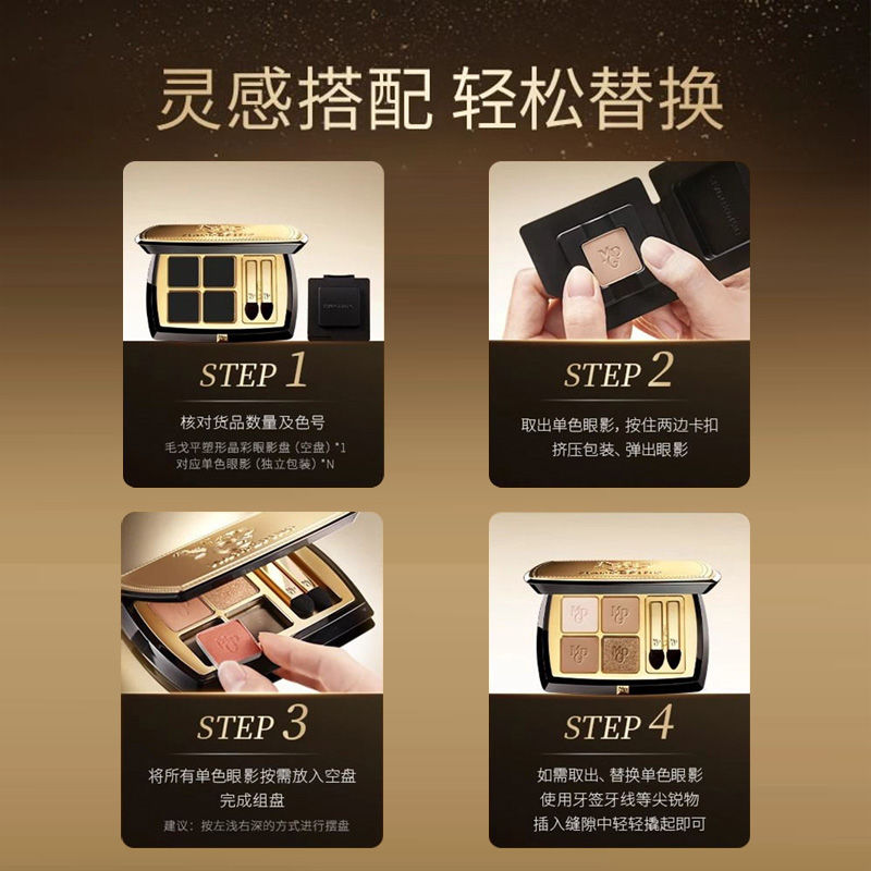 MAOGEPING/毛戈平新款塑形晶彩眼影盘,以大地色哑光为主色调,融合四色眼影设计,展现出独特的魅力。采用高品质材质,让眼影易于上色且持久不脱色,让你的眼妆更加动人。炫彩闪耀的眼影盘,无论是日常妆容还是派对妆容,都能轻松应对。其独特配方,让眼影贴合肌肤,呈现自然妆容效果,为你带来舒适的使用体验。精选大地色系,时尚百搭,让你展现个性魅力的同时不失优雅风范。这款眼影盘是你美妆必备良品。