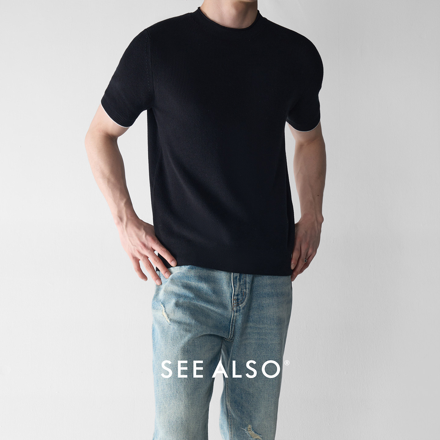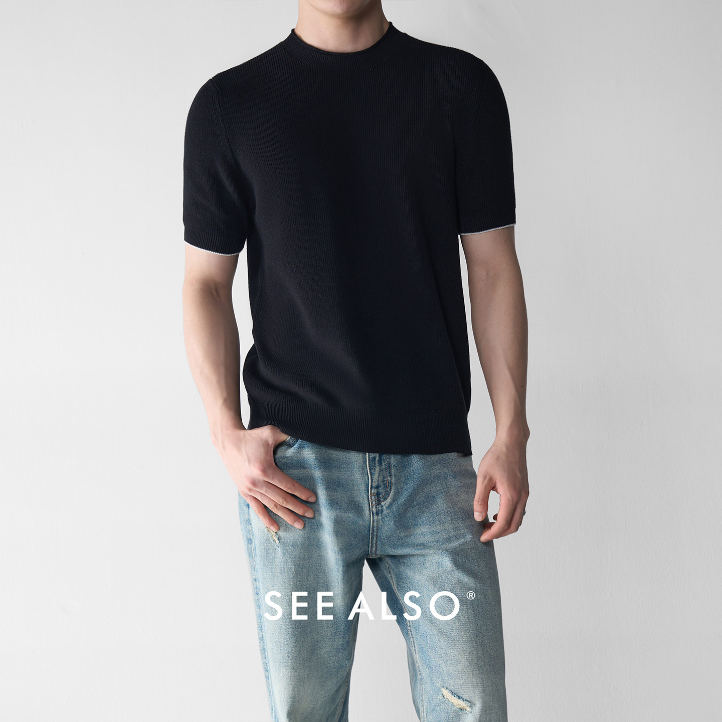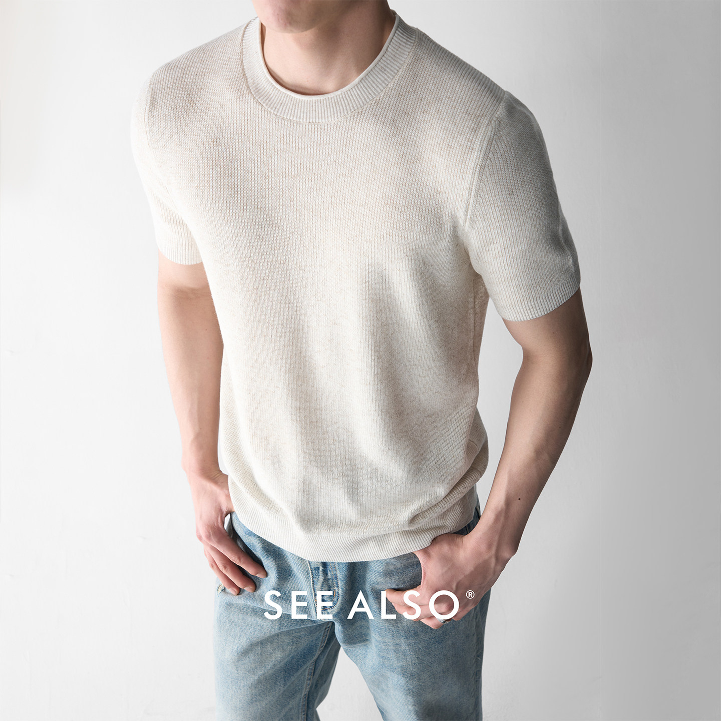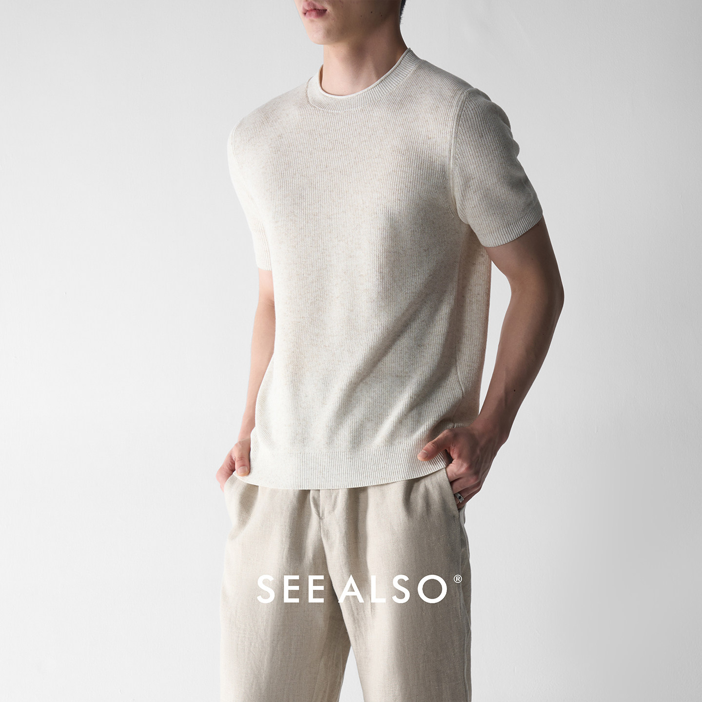 淘宝SEE ALSO 天丝亚麻混纺极简松弛感老钱风短袖针织衫t恤夏季男款