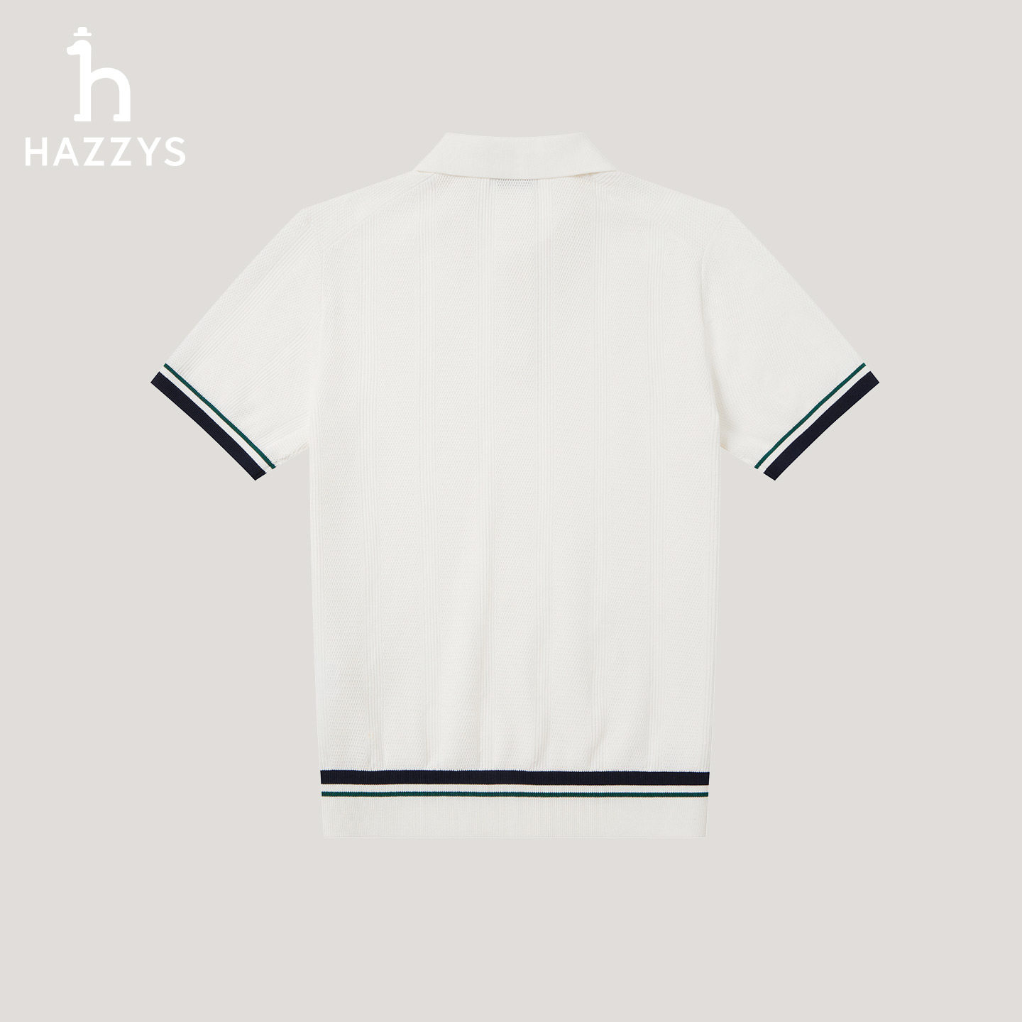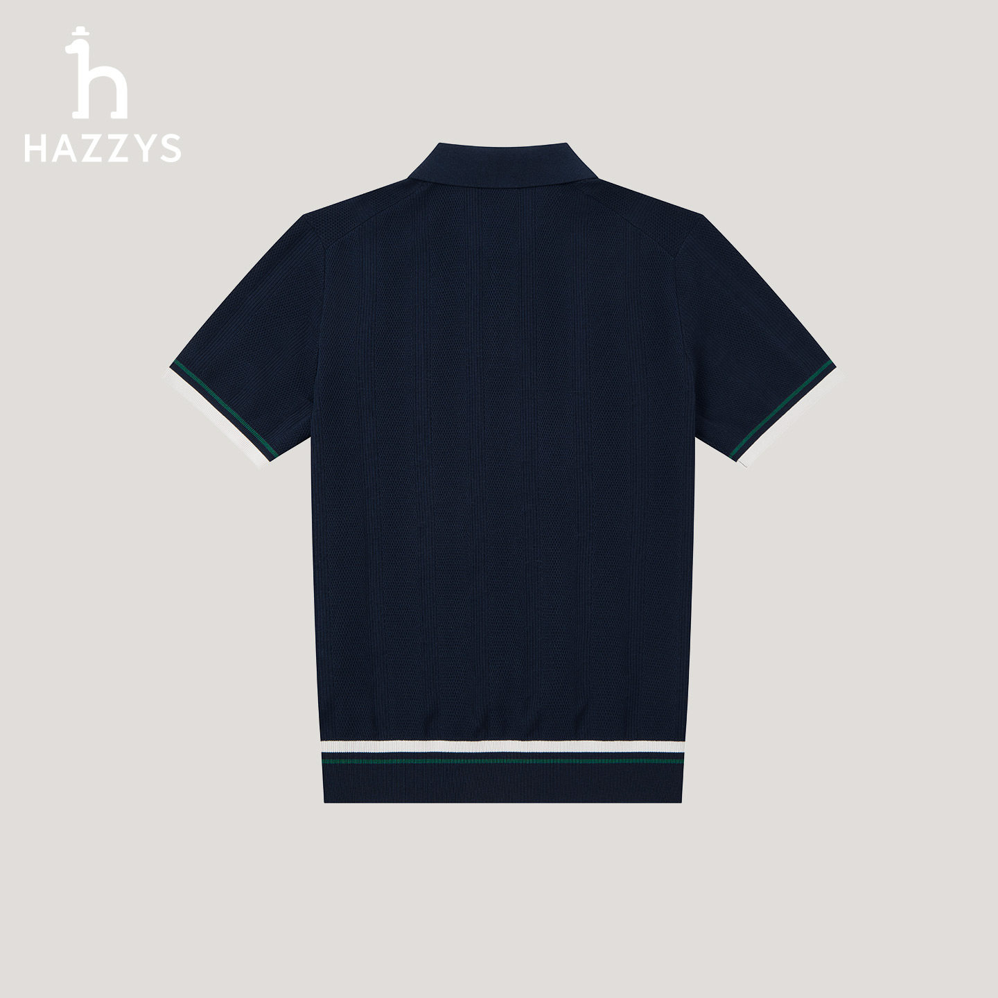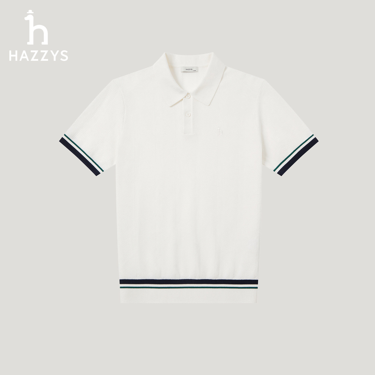 天【春夏甄选】Hazzys哈吉斯春季男装休闲通勤polo领短袖绞花针织衫