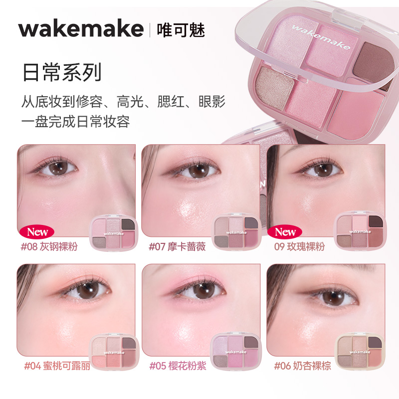 天猫新品WAKEMAKE唯可魅六色多用盘眼影高光腮红修容一体盘便携 临期
