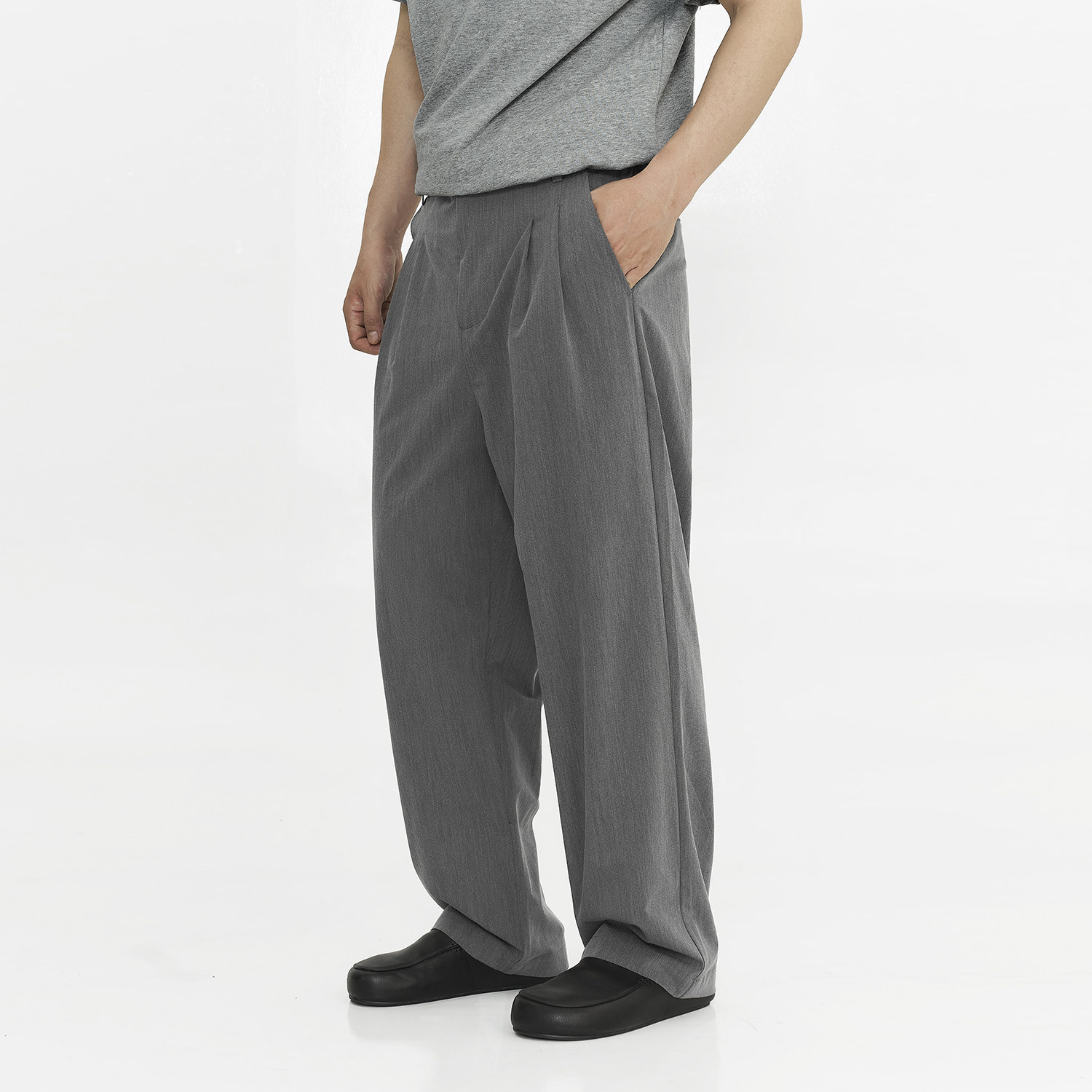 淘mountain tree重磅tr混纺对褶A字直筒阔腿垂感休闲长裤春夏西裤男