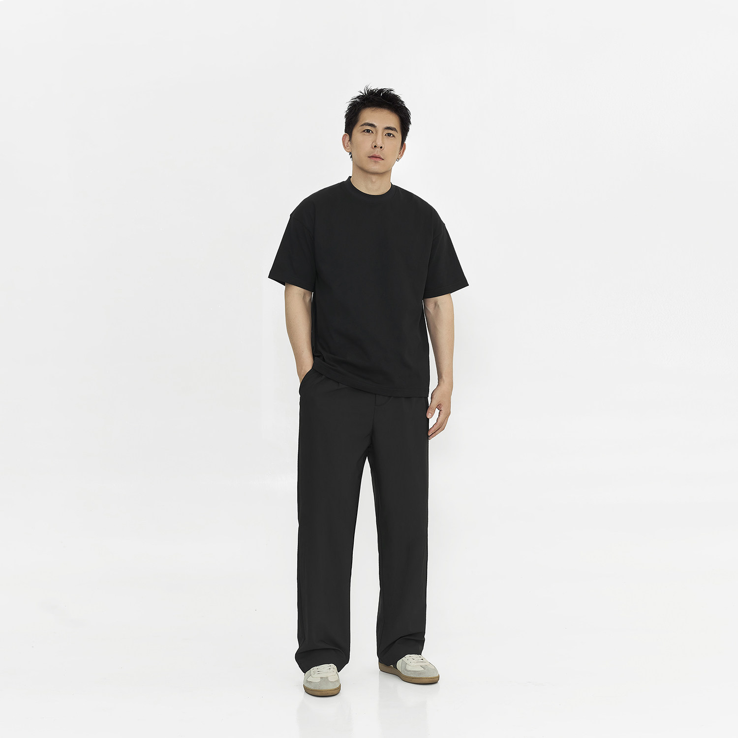 CeTky美式高街cleanfit廓形西裤黑色薄休闲裤男女直筒微喇夏季裤