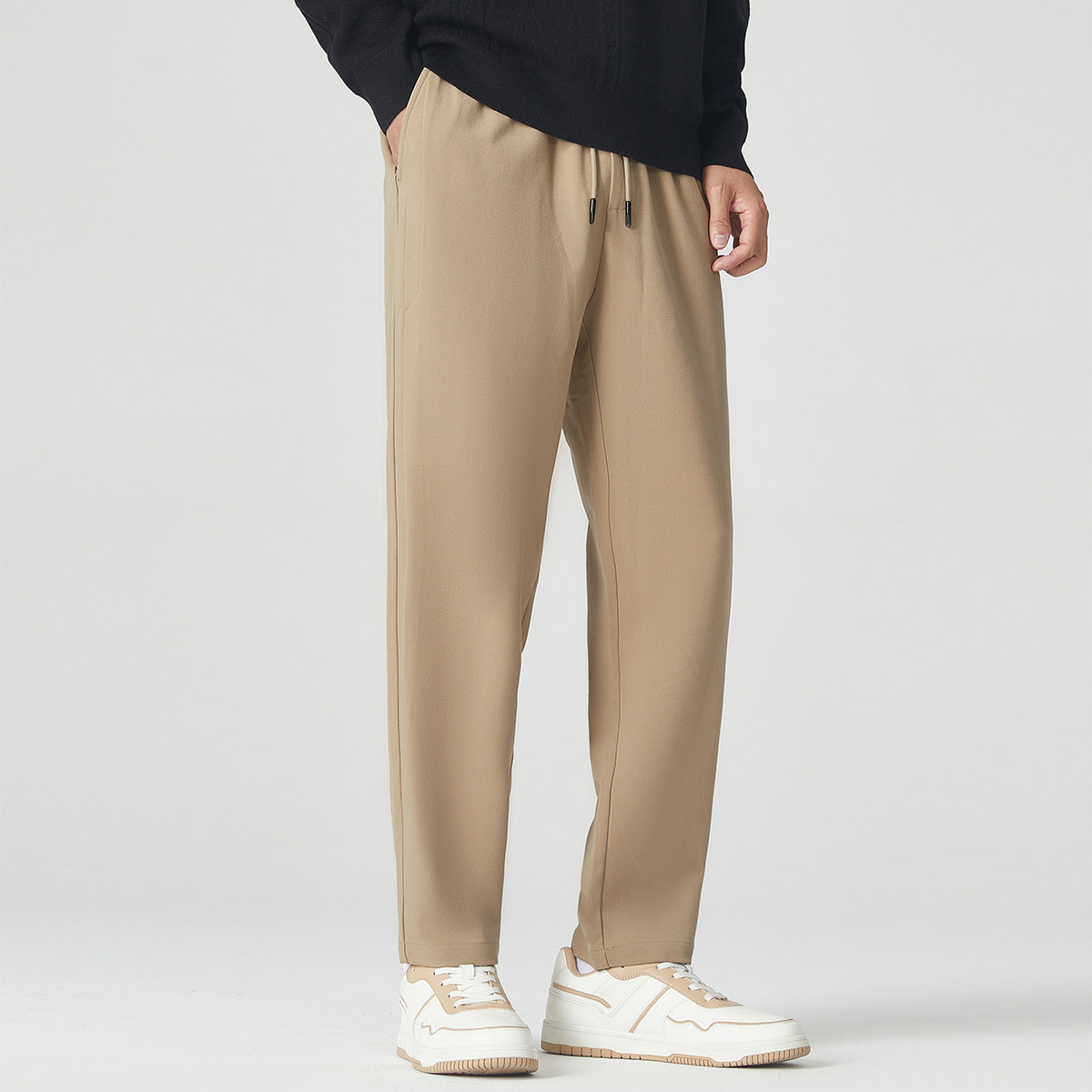 天【新品】男士轻商务四季款垂感免烫巴黎扣混纺米色商务休闲西裤男