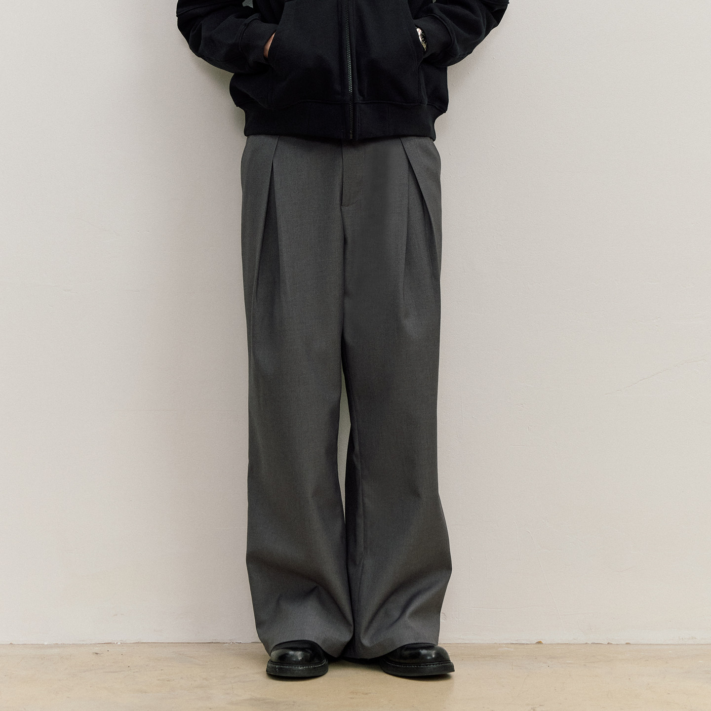 淘宝VMCL A字褶阔腿西裤cleanfit垂坠感宽松长裤男25AW vermicelli