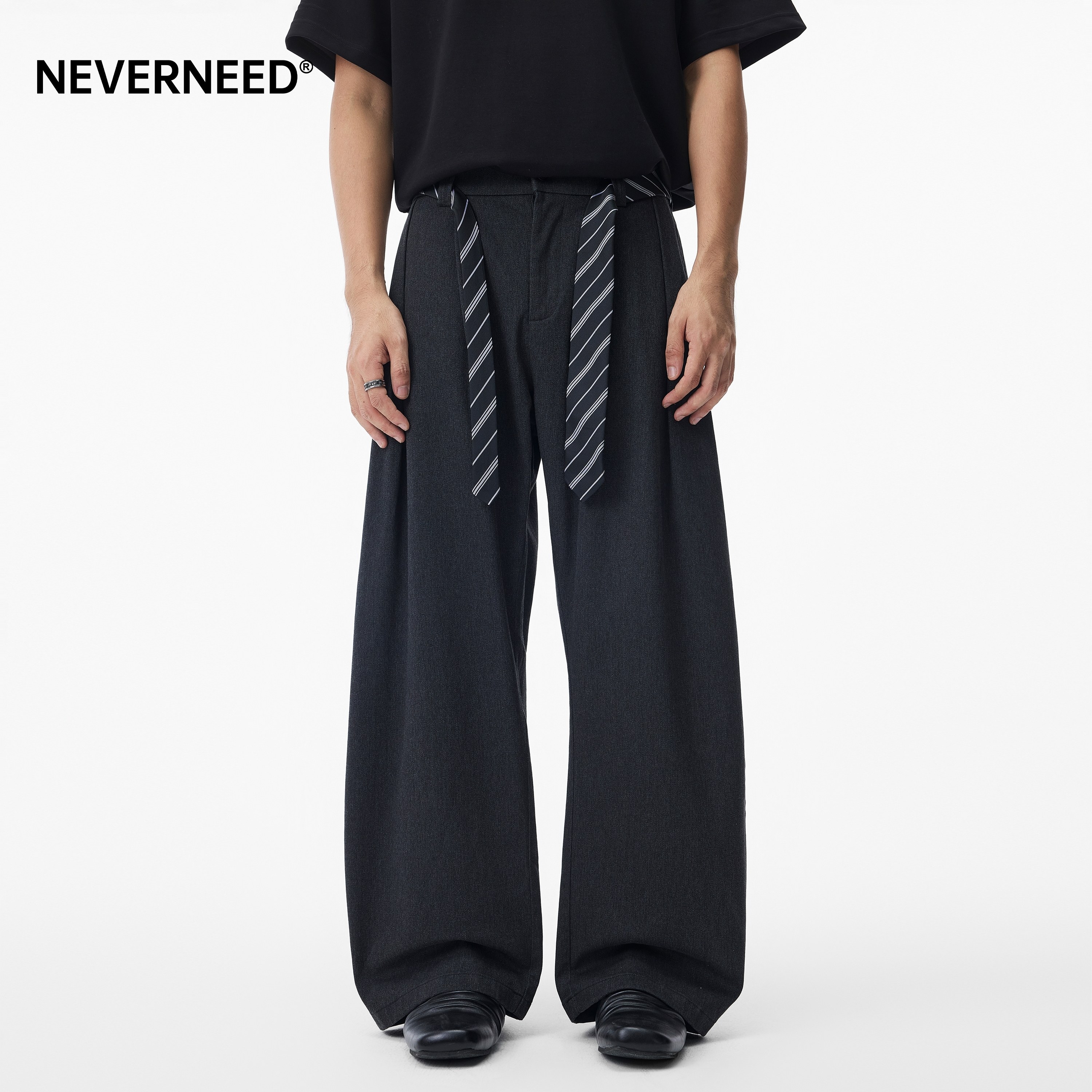 WHIMNOTION 25SS 可拆卸腰包打褶阔腿西裤男垂顺抗皱直筒休闲长裤