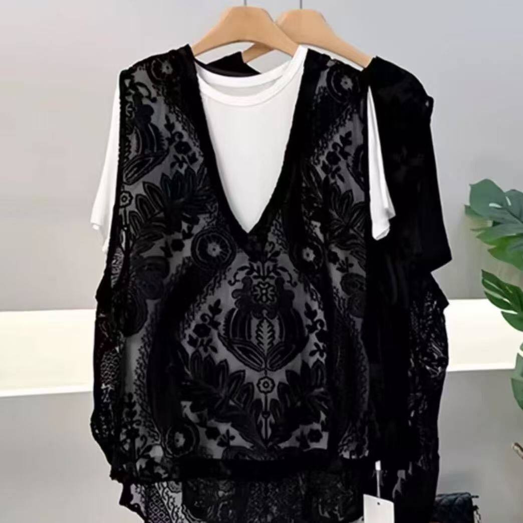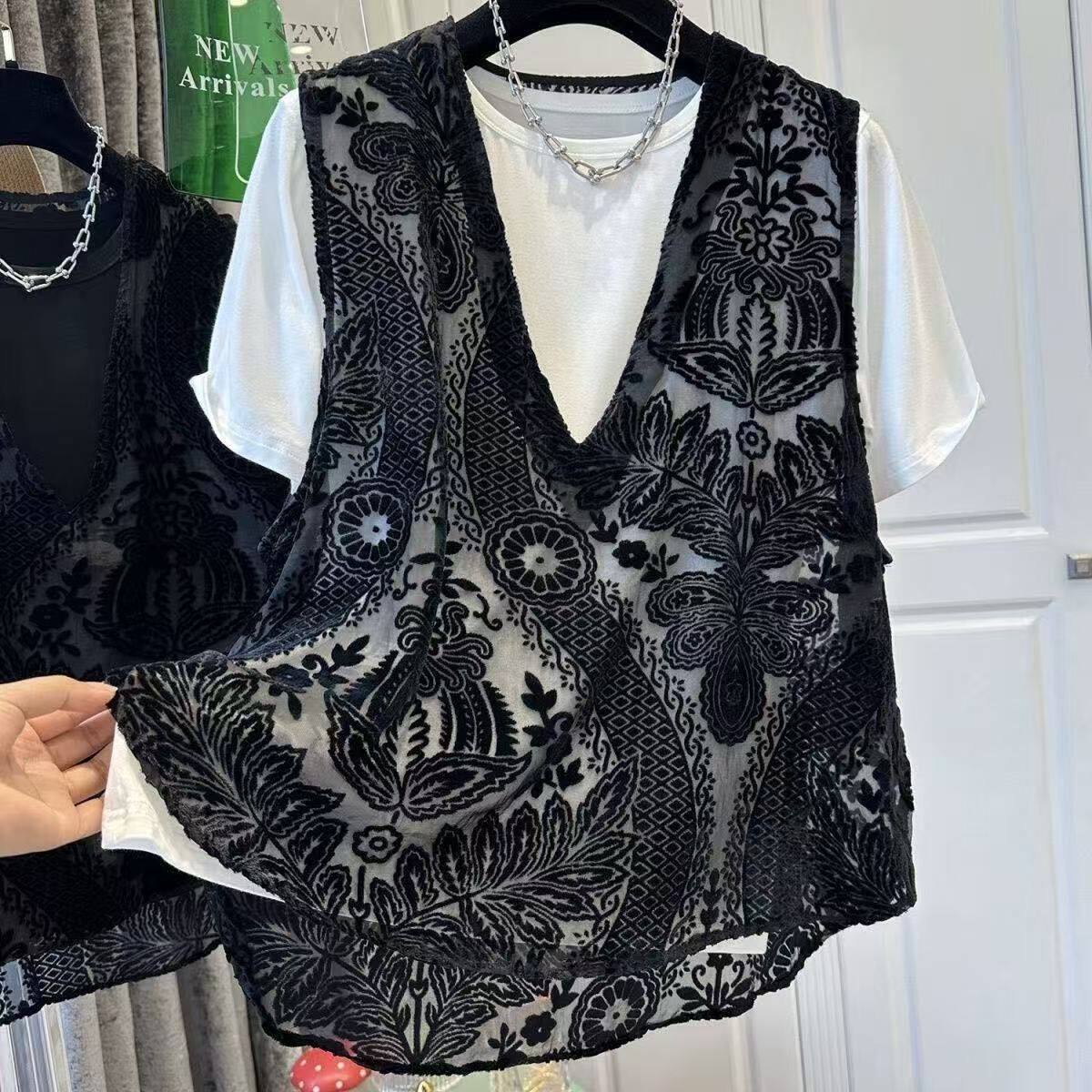 淘宝新中式植绒蕾丝背心外搭夏季新款时尚百搭蕾丝马甲叠穿孕妇上衣女