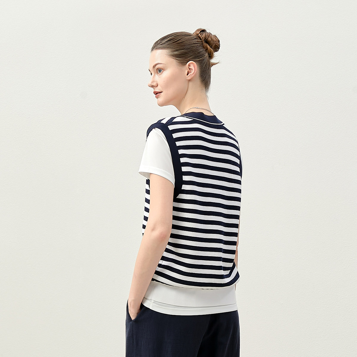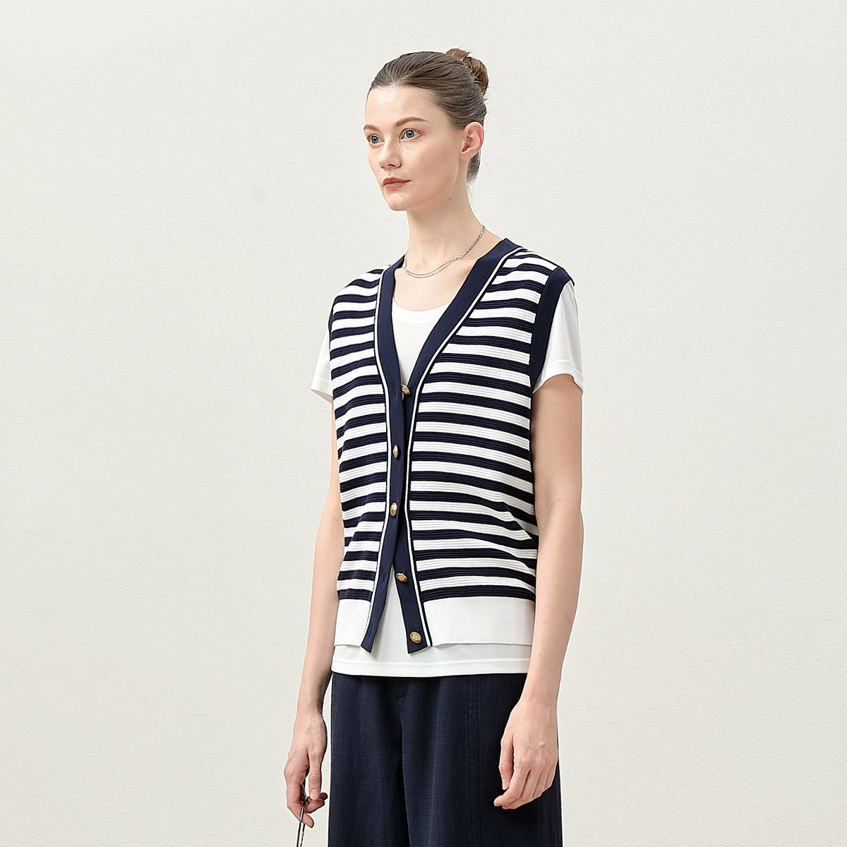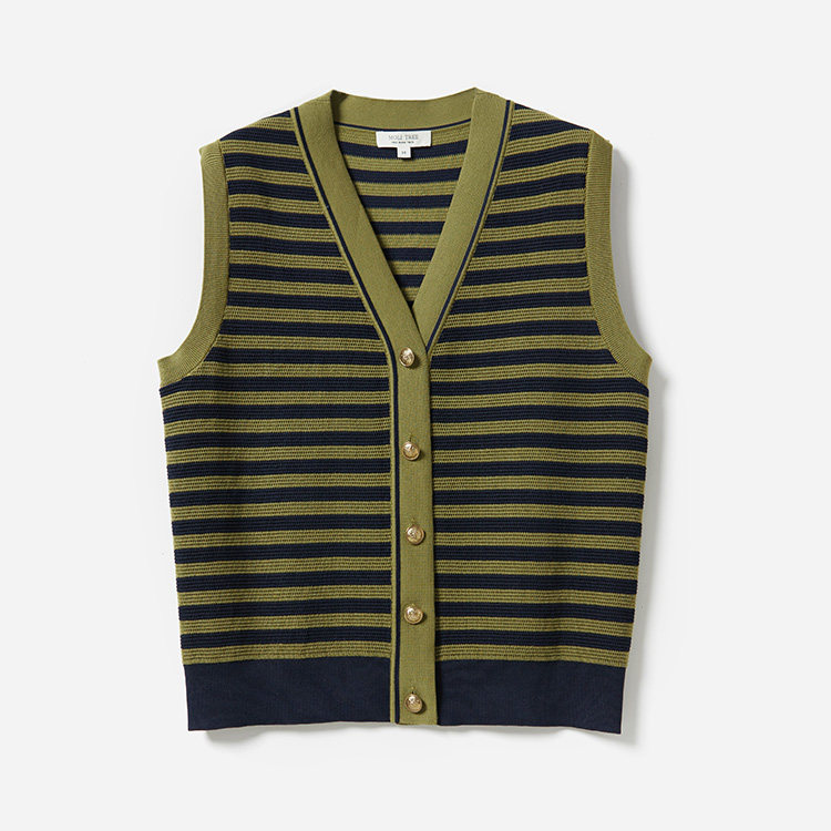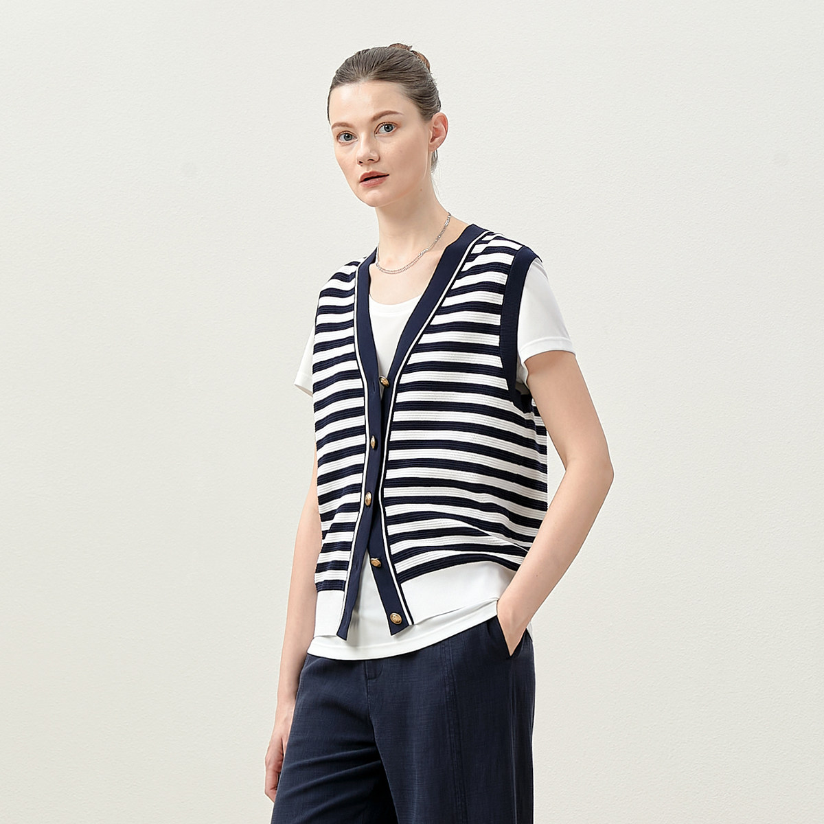 淘宝*WZK06161 WISICA认证西印度群岛海岛棉提花条纹针织V领开衫马甲