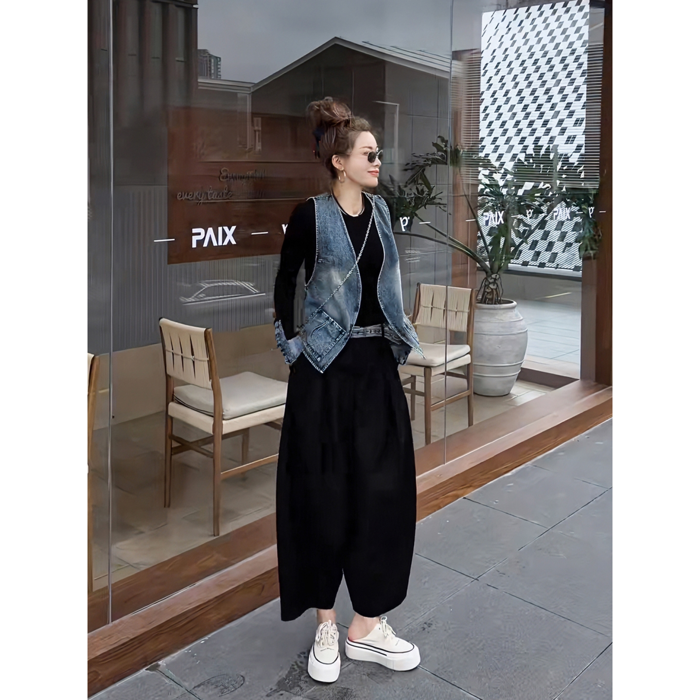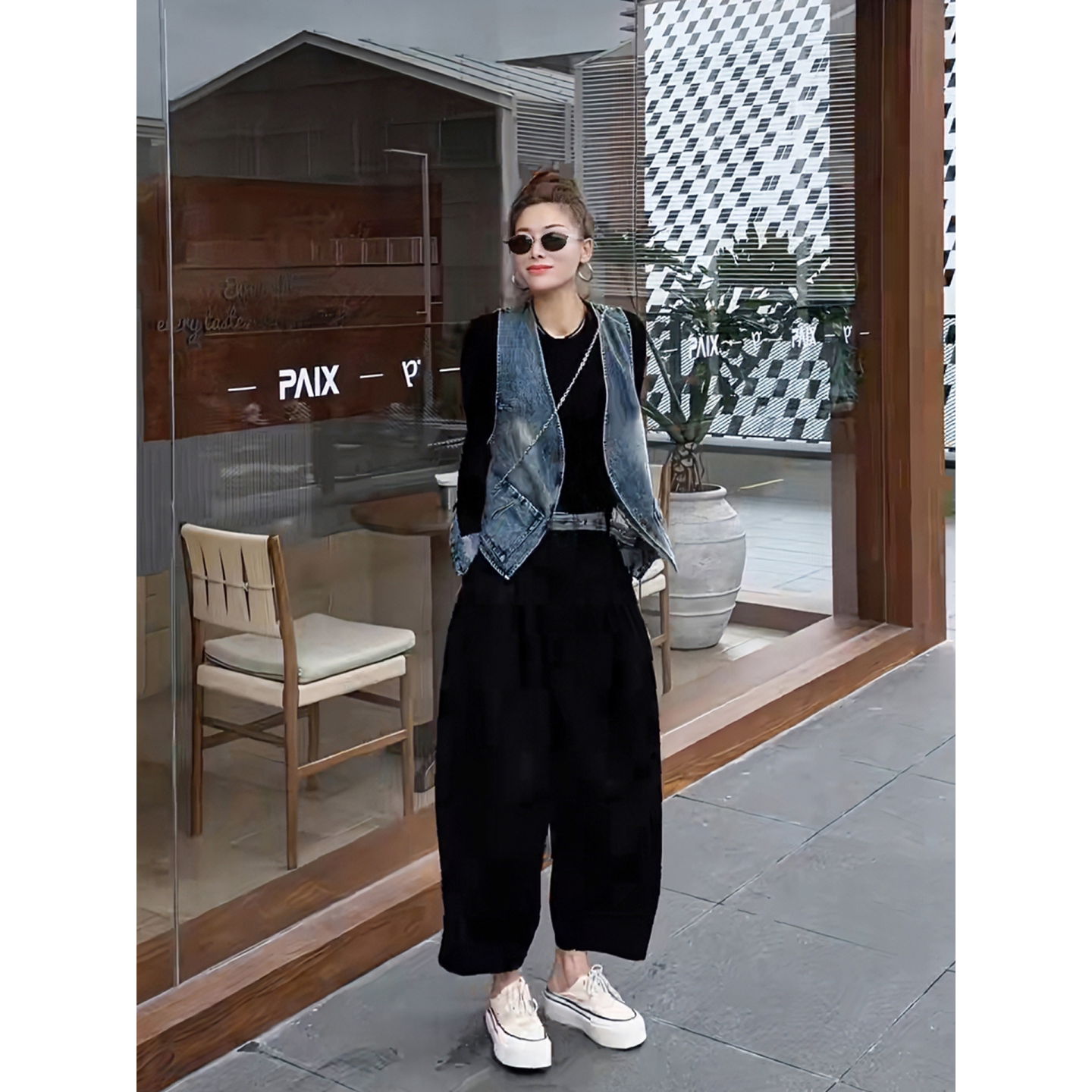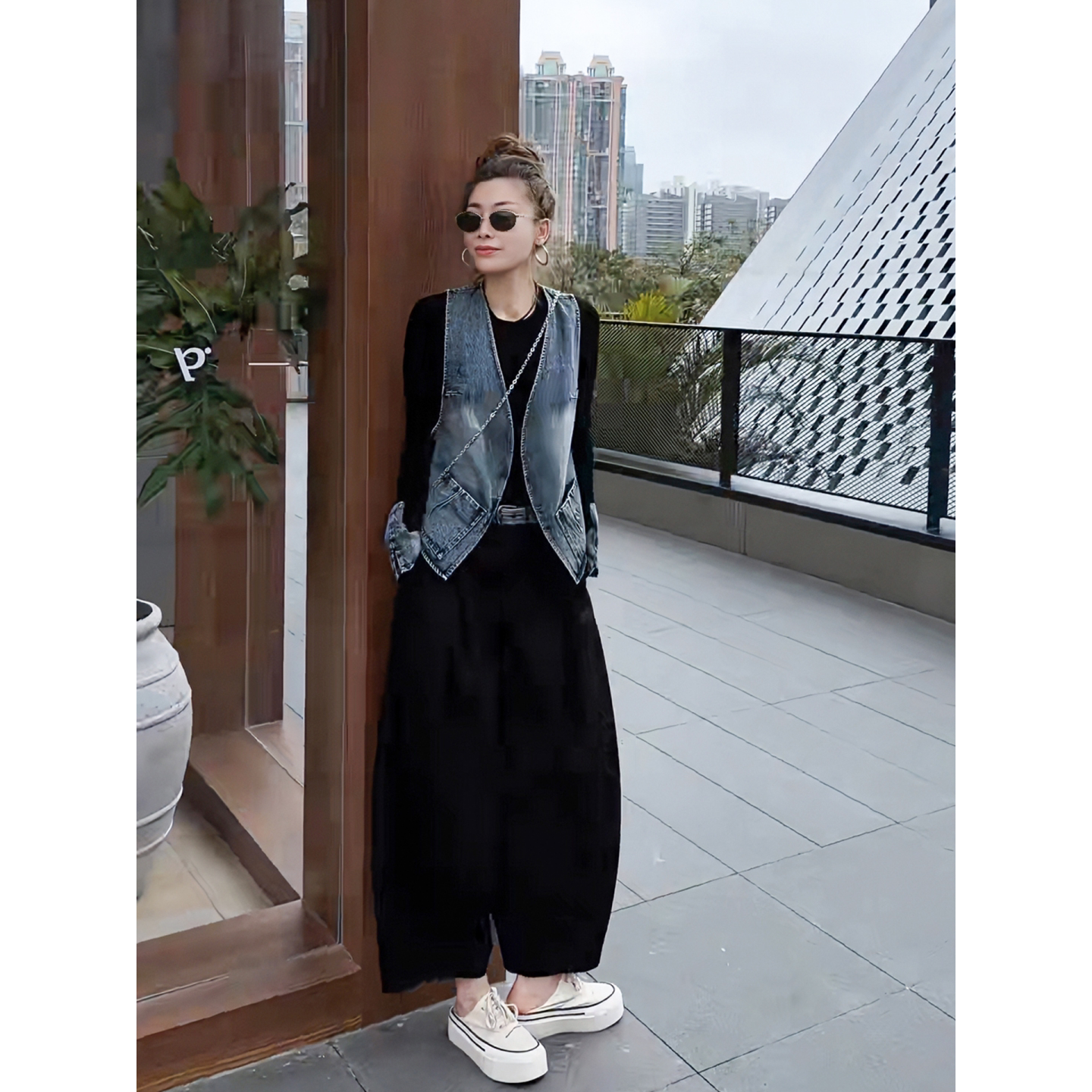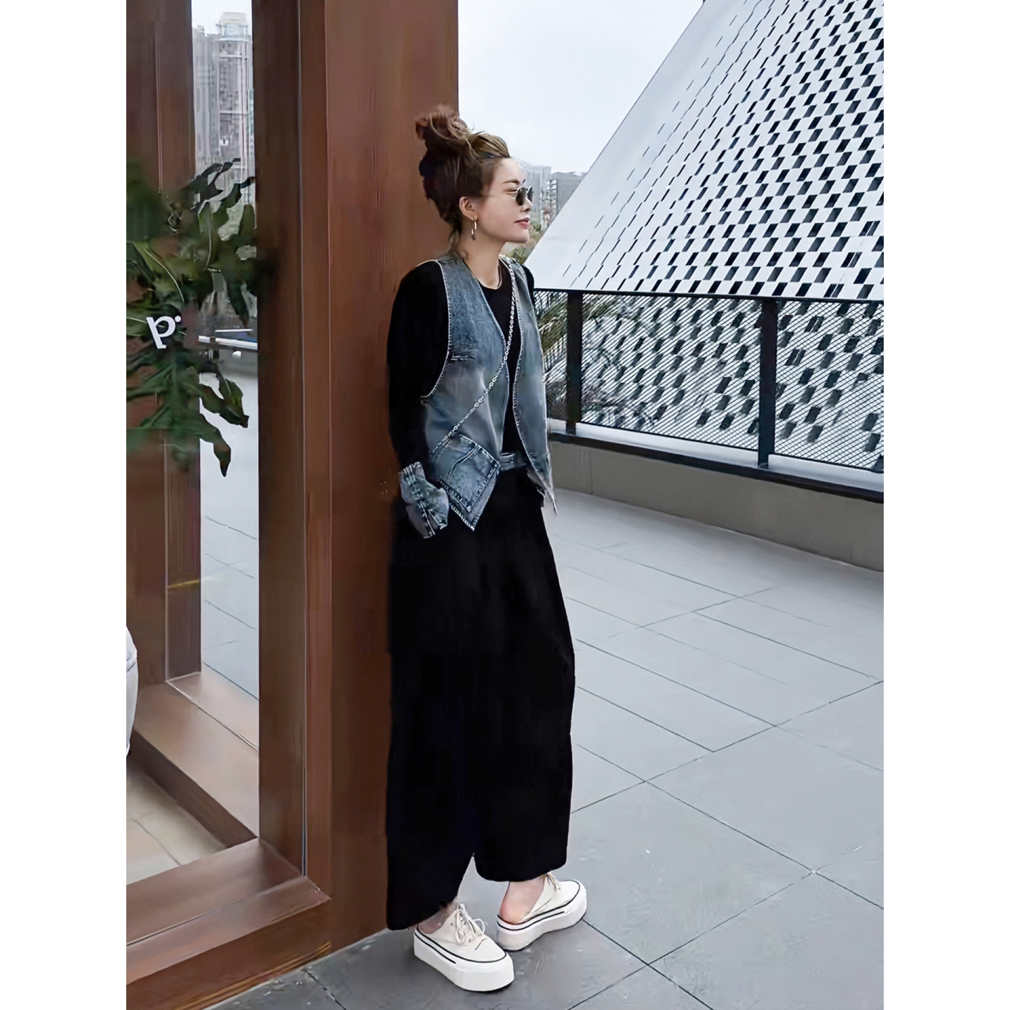 MISSKO可可欢姐早春新款真两件套,巧妙融合时尚与实用,打造都市女性的春日新造型。套装包含一件洋气牛仔马甲与百搭时尚打底T恤,层次感十足。牛仔马甲采用优质水洗牛仔面料,剪裁利落,复古中透着现代感;内搭T恤简约舒适,亲肤透气,可单穿亦可叠穿。整体设计注重细节,金属扣饰与精致走线彰显品质。无论是搭配裤装还是裙装,都能轻松驾驭多种风格,展现独立自信的女性魅力。早春出行、日常通勤或休闲约会,这套两件套都是不可或缺的时尚利器,让你轻松穿出高级感与潮流范儿。