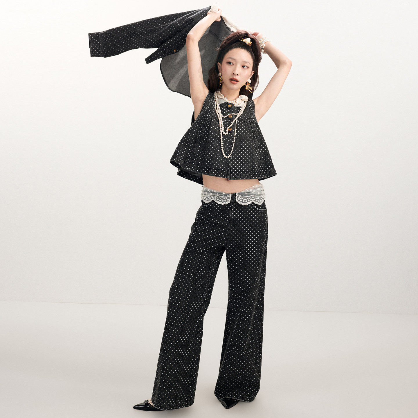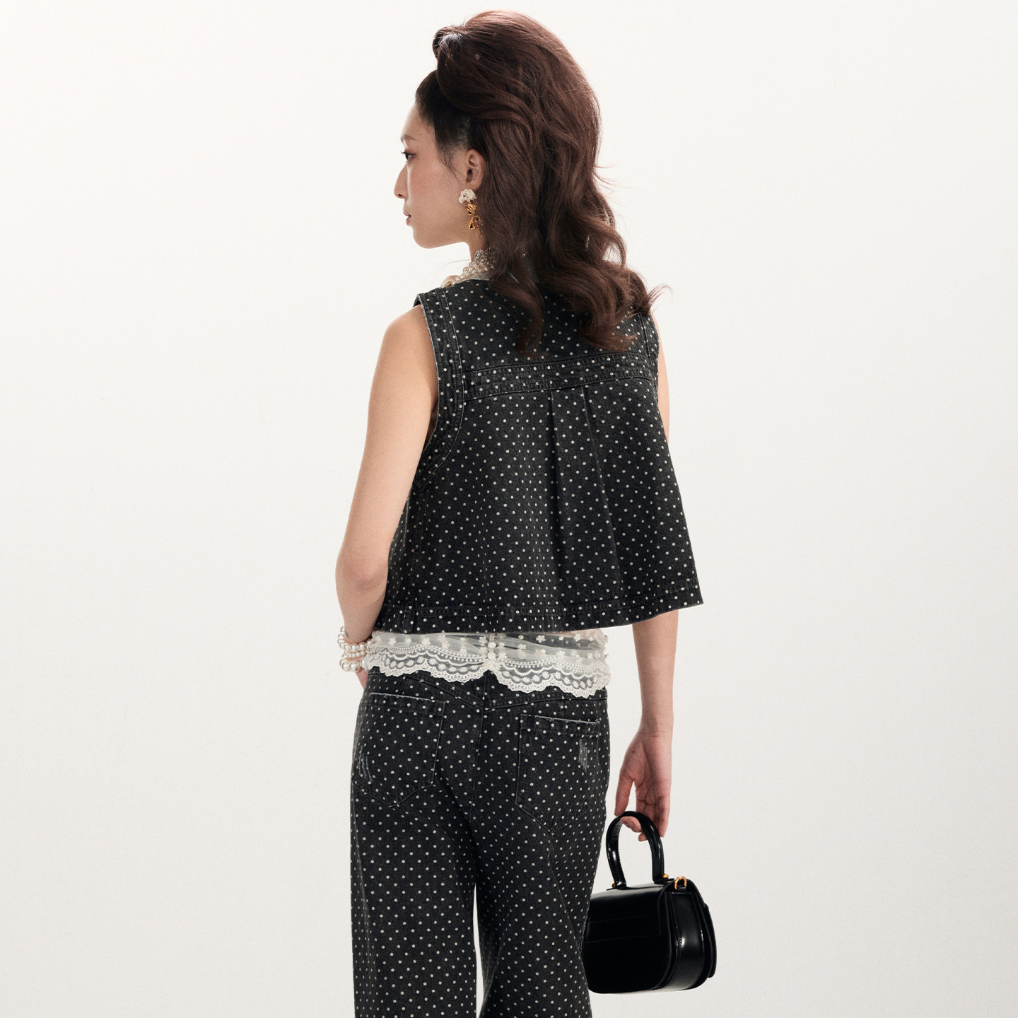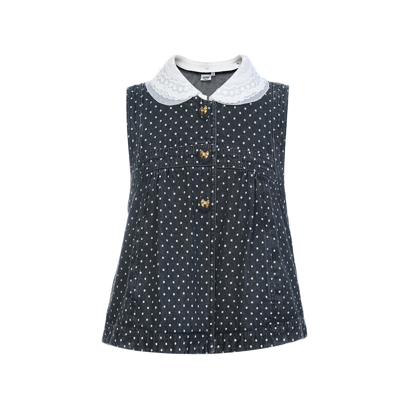 天猫lefame拉飞姆2026春季新款时尚洛可可波点廓形A字牛仔背心马夹女