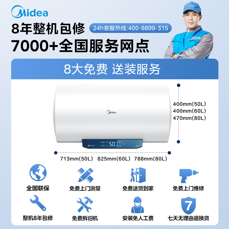天猫美的节能速热电热水器一级能效60/80升家用卫生间洗澡JM1官方旗舰
