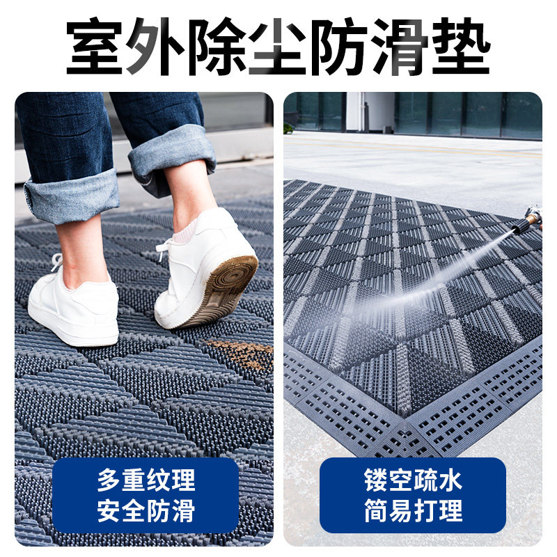 这款家门口地垫专为别墅、商铺及户外入户门设计,兼具实用性与美观性。采用高品质耐磨材质,具备优异的防滑性能,有效保障家人与顾客的安全。表面纹理设计增强除尘效果,轻松刮除鞋底泥沙与污渍,保持室内清洁。底部防滑底背稳固贴合地面,不易移位。防水、防晒、抗老化,适应各种户外天气条件,耐用易清洁。简约大气的外观风格,适配多种装修风格,既提升入户门面的整洁度,又增添温馨质感。无论是家庭别墅还是商业门店,都是理想的门垫选择,让每一次归家或迎客都从洁净开始。