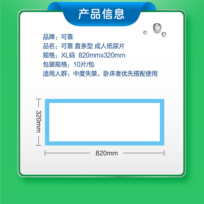 可靠成人纸尿片(820×320mm)专为老年人设计,适用于男女失禁人群,提供全天候安心防护。采用加厚高吸收芯体,具备超大吸量,可快速锁水、防反渗,保持表层干爽,有效预防红臀与异味。立体防漏隔边设计,贴合身体曲线,侧睡、翻身也不易侧漏。柔软亲肤表层,透气底膜,减少闷热感,提升穿着舒适度。尺寸适中,适合中重度失禁用户日常或夜间使用。无论是居家护理还是外出携带,都能给予使用者尊严与安心,是 caregivers 信赖的护理之选。可靠品质,贴心守护每一刻。