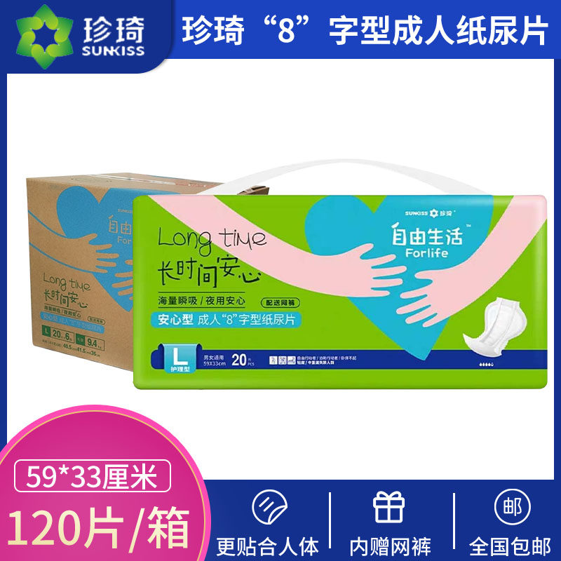 淘宝整箱6包珍琦贴静自由生活安心8字L号纸尿片成人蝴蝶片葫芦型尿布