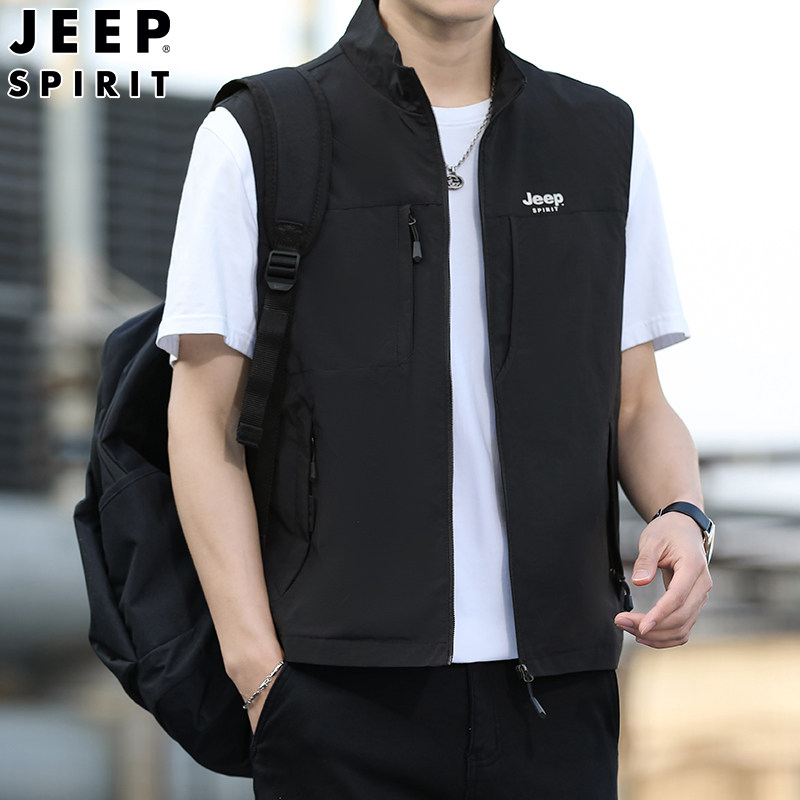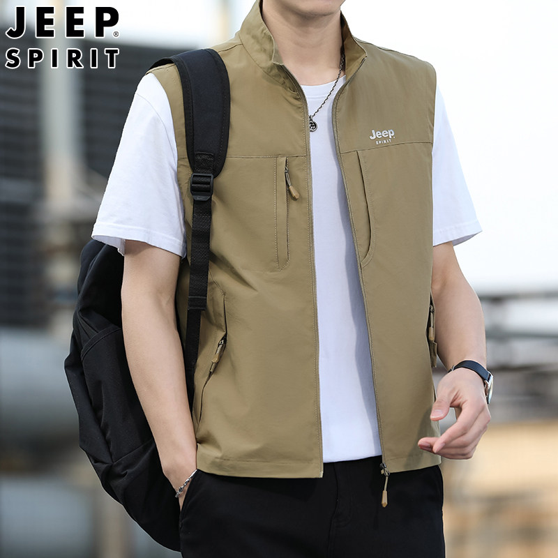 天猫JEEP吉普男士工装马甲2026春季新款户外休闲多口袋摄影钓鱼马夹男