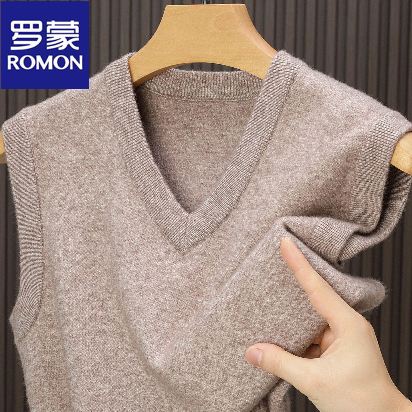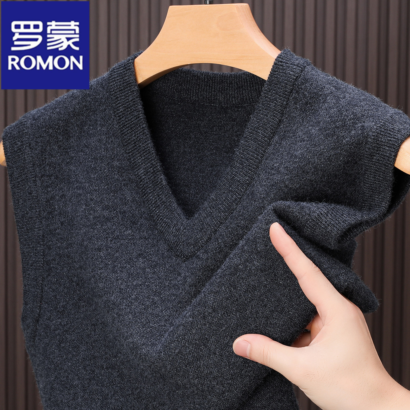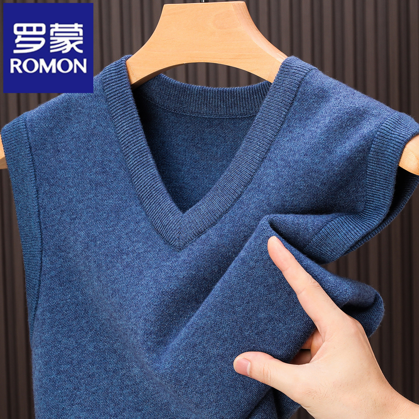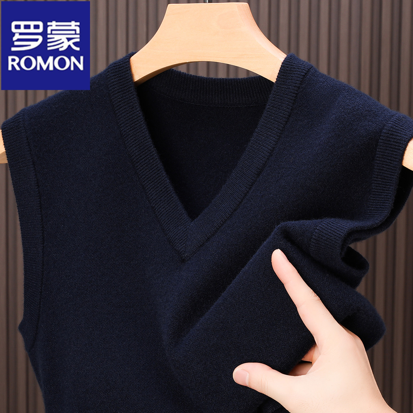 淘宝罗蒙专柜正品100%纯羊毛背心男士V领马甲套头保暖加厚针织衫坎肩