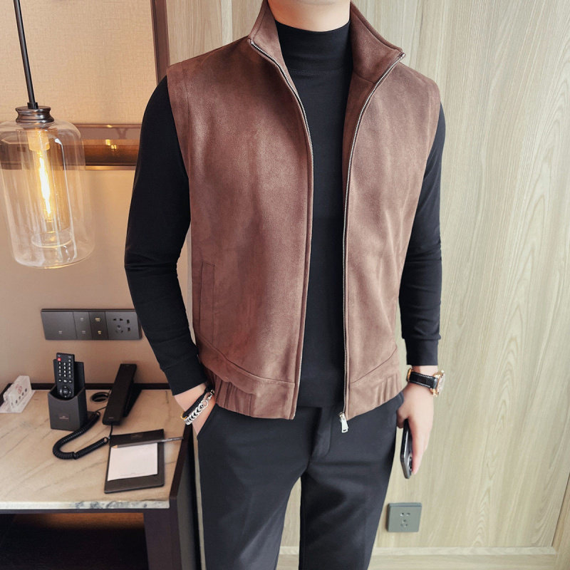 皮尔卡丹双面绒一体马甲男秋冬新款加绒保暖立领坎肩毛呢无袖外套