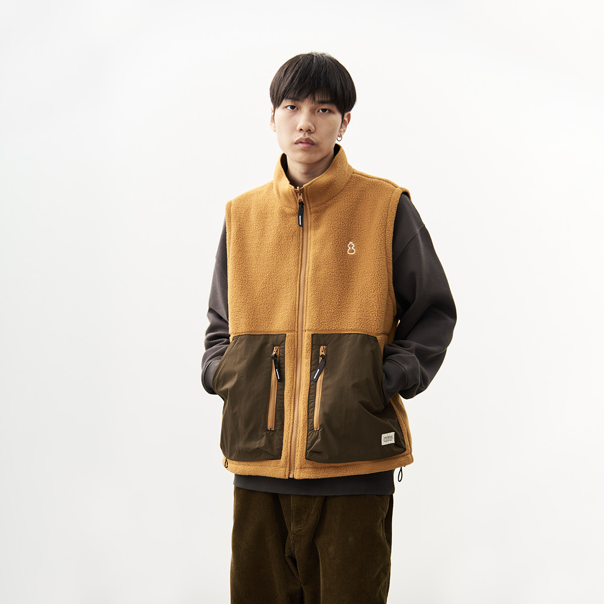 “吃茶去chichaqu”秋冬双面穿抓绒马甲,融合山系美学与实用功能,专为户外爱好者设计。采用高品质摇粒绒面料,双面可穿,一面高领保暖,一面简约立领,轻松应对不同穿搭场景。马甲内里细腻柔软,锁温透气,有效抵御秋冬寒风。立体剪裁兼顾活动自由度,男女同款设计,适配多种身形。胸前口袋兼顾储物与暖手功能,细节贴心。无论是山野徒步、城市通勤,还是日常休闲,这款马甲都以轻盈保暖、时尚百搭脱颖而出,是秋冬户外穿搭的理想之选,让温暖与风格同行。