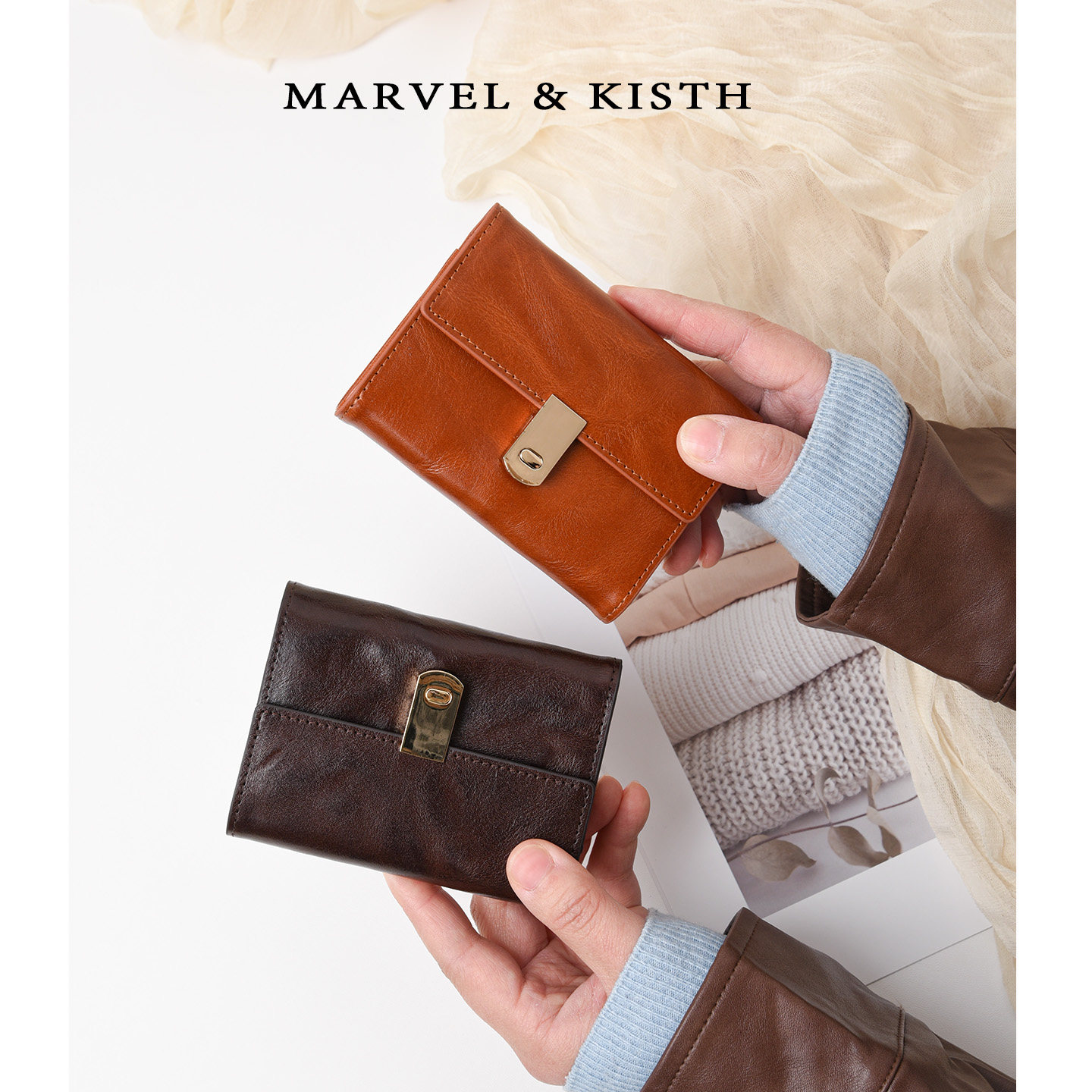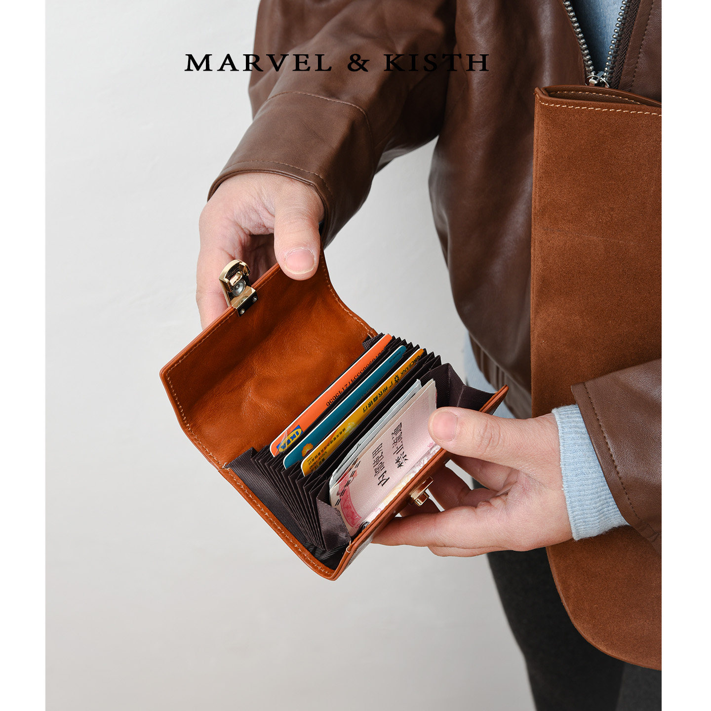 淘鹿小姐复古可爱植鞣牛皮大容量风琴卡包真皮银行卡零钱收纳包