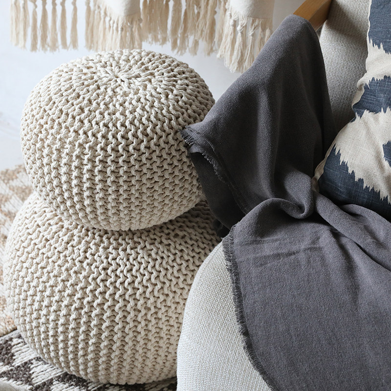 淘宝可冲洗侘寂风民宿手工编织榻榻米茶几豆袋蒲团坐墩坐垫搁脚换鞋凳