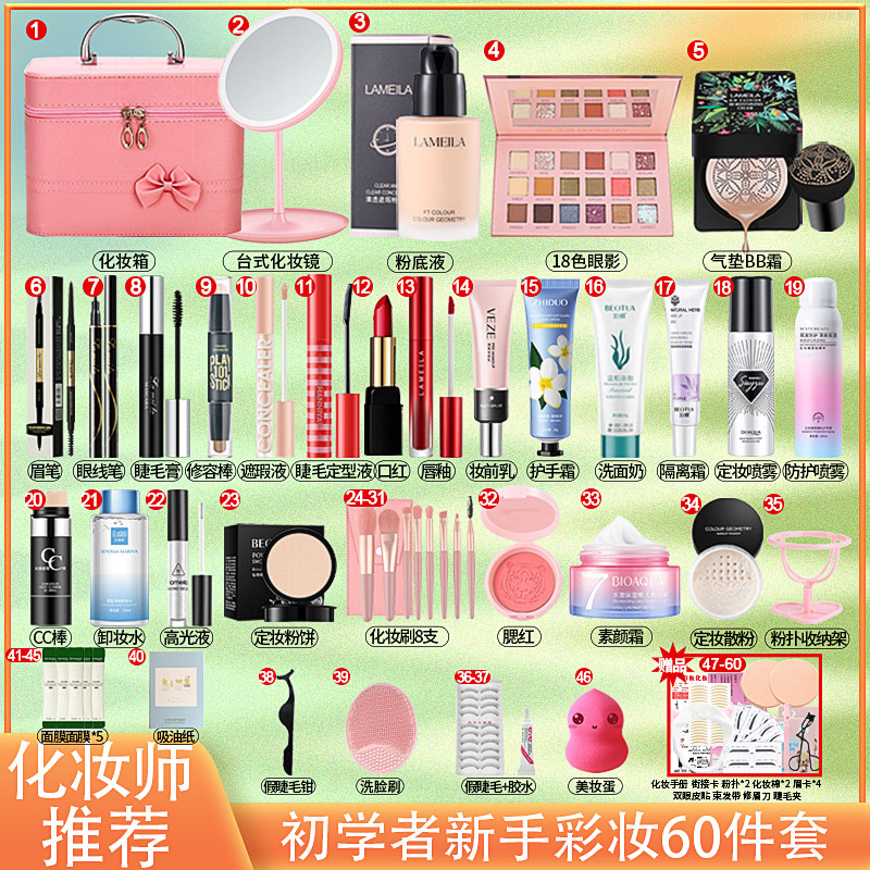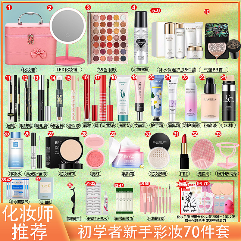 这款专为新手入门设计的女学生化妆品套装,是初学者打造清新淡妆的理想选择。套装包含粉底液、遮瑕膏、眼影盘、腮红、眉笔、睫毛膏及口红等全套彩妆产品,品类齐全,满足日常淡妆所需。所有产品均为正品,质地温和,易于上妆,适合年轻肌肤使用。色彩搭配自然柔和,强调清透、自然的妆效,避免浓重感,非常适合学生日常上课或校园活动。包装精美便携,附带化妆刷具,方便随时补妆。无论是化妆新手还是追求简约风格的女生,都能轻松上手,快速打造自信好气色,开启美丽第一步。