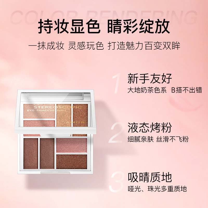 淘宝AMIIR艾米尔八色立体眼影盘大地色珠光哑光大盘套装*佳琦推荐8色