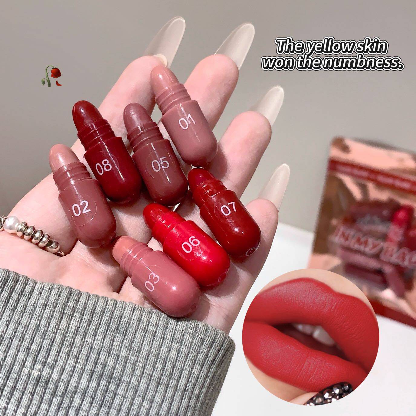 MAGICCASA 8色甜心可可胶囊口红套装,专为追求时尚与品质的您打造。精选8款经典哑光色调,灵感源自甜蜜可可,轻松驾驭日常通勤、约会派对等多种场合。轻盈雾面质地,上唇顺滑不拔干,持色持久,不易沾杯,告别频繁补妆烦恼。迷你胶囊设计,精致便携,轻松放入口袋或小手包,随时随地焕发动人唇色。通过跨境品质认证,安全放心,适合多种肤色使用。无论是自用还是送礼,MAGICCASA甜心可可口红套装都是理想之选,让双唇绽放自信魅力,尽显优雅气质。