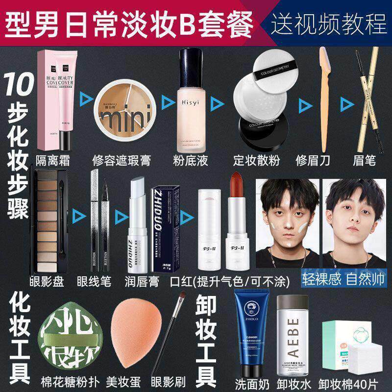 天猫正品男士化妆品套装全套男生初学者彩妆学生BB自然裸妆套裸妆用礼
