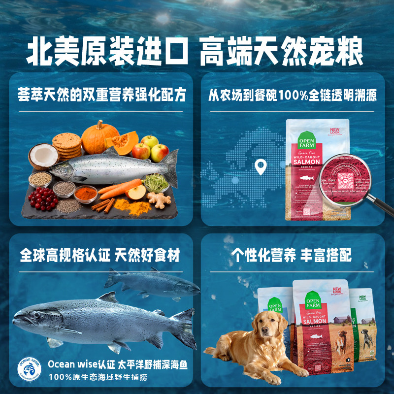 天猫OPENFARM自由牧场三文鱼鸡肉牛肉无谷小型成幼犬狗粮【部分临期】