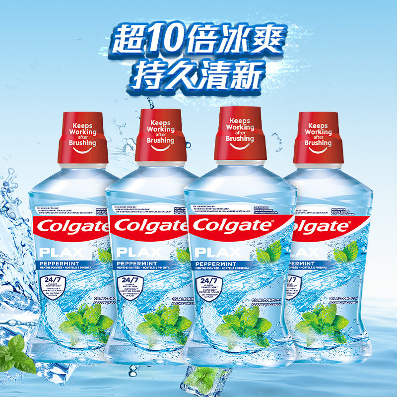 天猫高露洁酷爽薄荷漱口水0酒精温和不刺激清新口气减少细菌家庭装zb