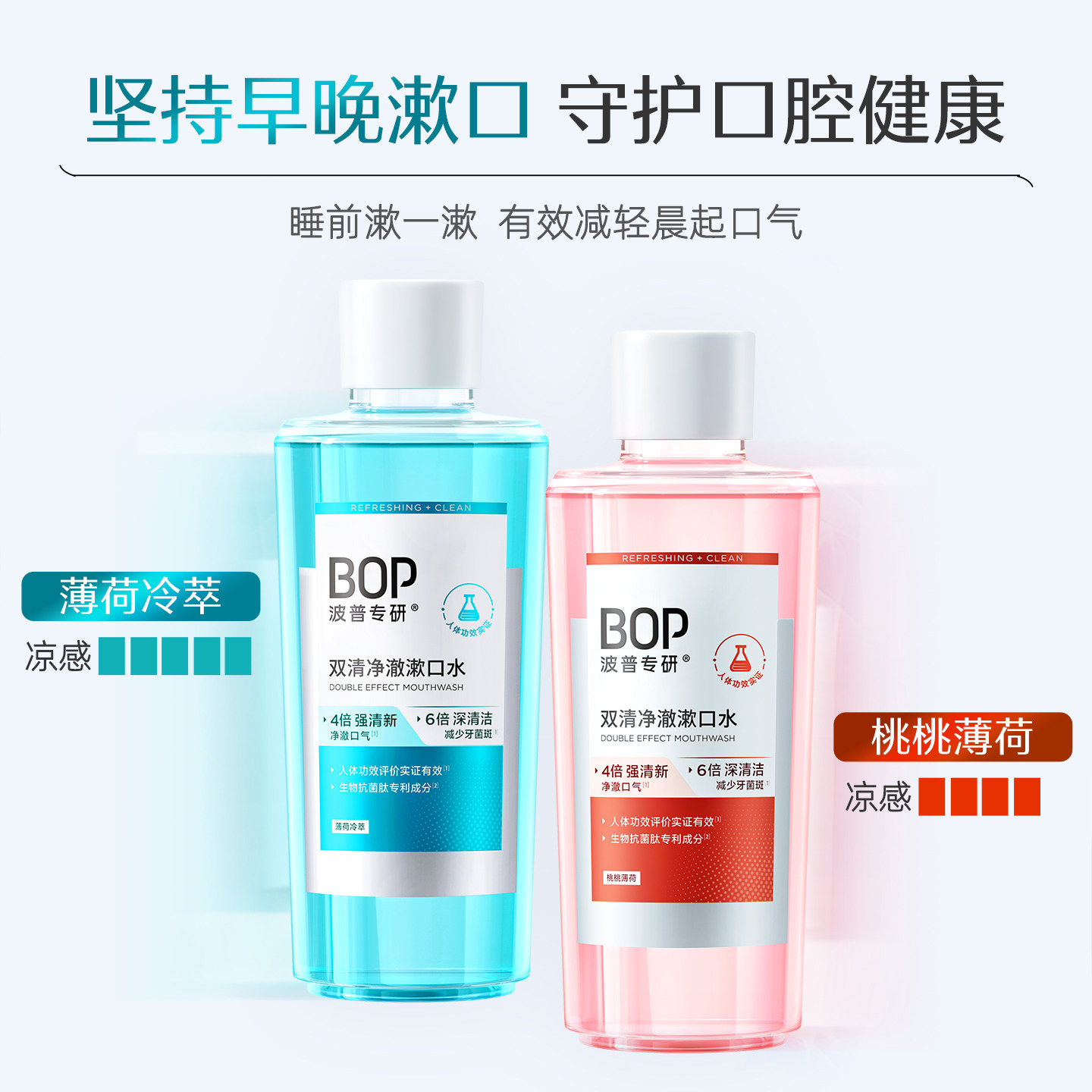 BOP双清瓶装漱口水,专为追求清新口气的男女设计,采用温和配方,有效清洁口腔、抑制细菌滋生,持久留香长达数小时。其双效清洁系统深入齿缝与舌苔,去除食物残渣与异味根源,带来清爽洁净的呼吸体验。便携瓶装设计,居家、办公、旅行皆宜,是家庭囤货的理想选择。不含酒精,温和不刺激,适合每日使用,呵护牙龈健康。男女通用,清新薄荷与淡雅果香两种香型可选,满足不同喜好。坚持使用,助您时刻保持自信笑容,守护口腔健康每一天。