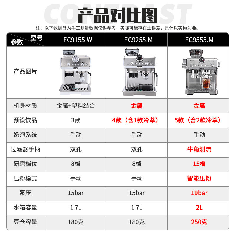 DeLonghi德龙EC9255意式半自动小型咖啡机磨豆一体夏天冷萃冰咖啡
